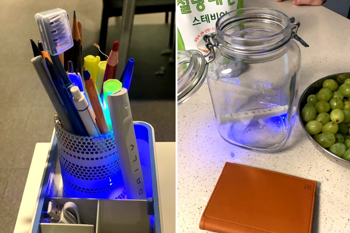 手帳の形に収まらないものがあれば除菌機を分離して除菌を行えます。