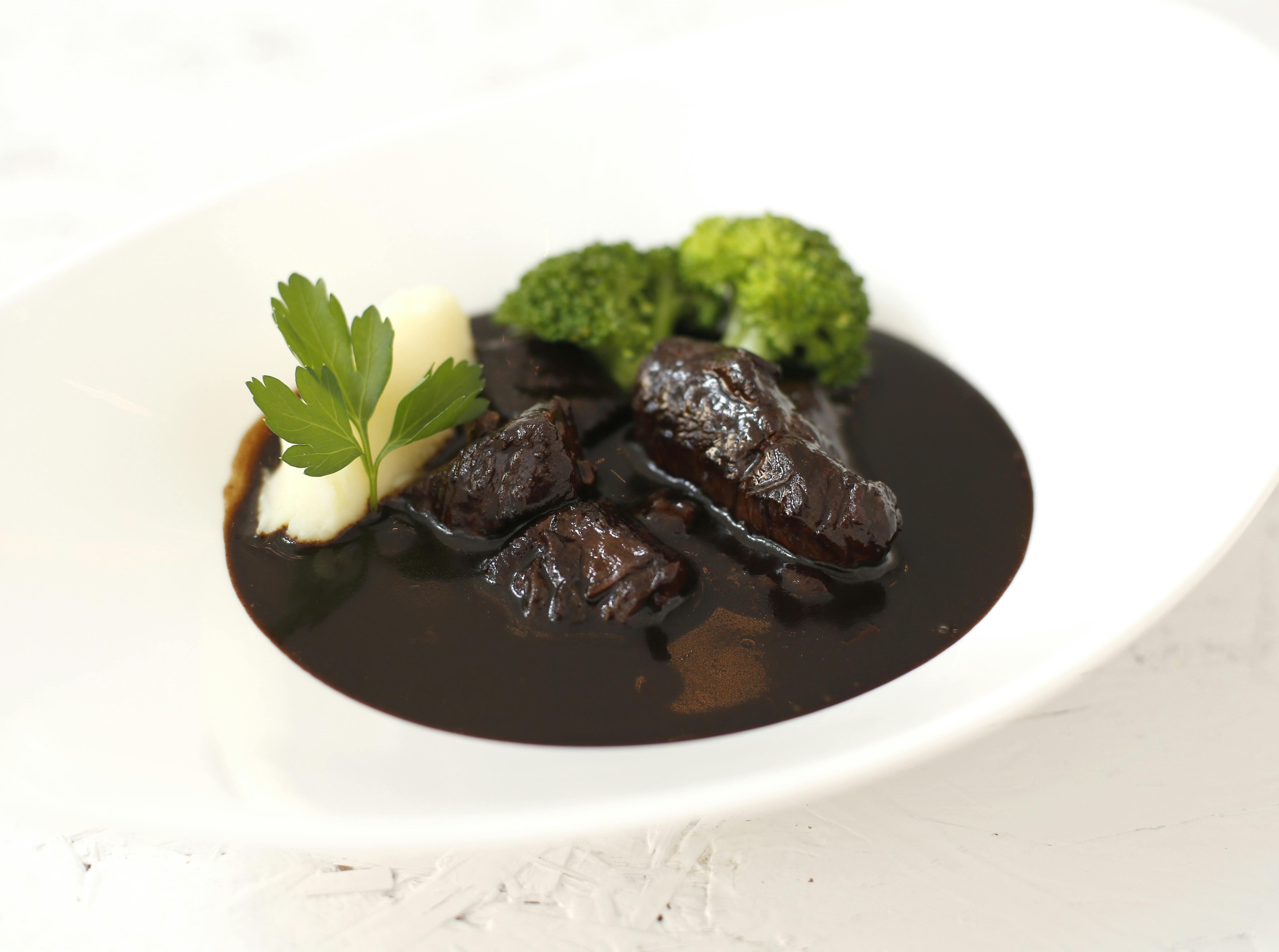 牛肉を黒ビールで半日から1日かけてじっくり煮込んで仕上げるシェフの味。