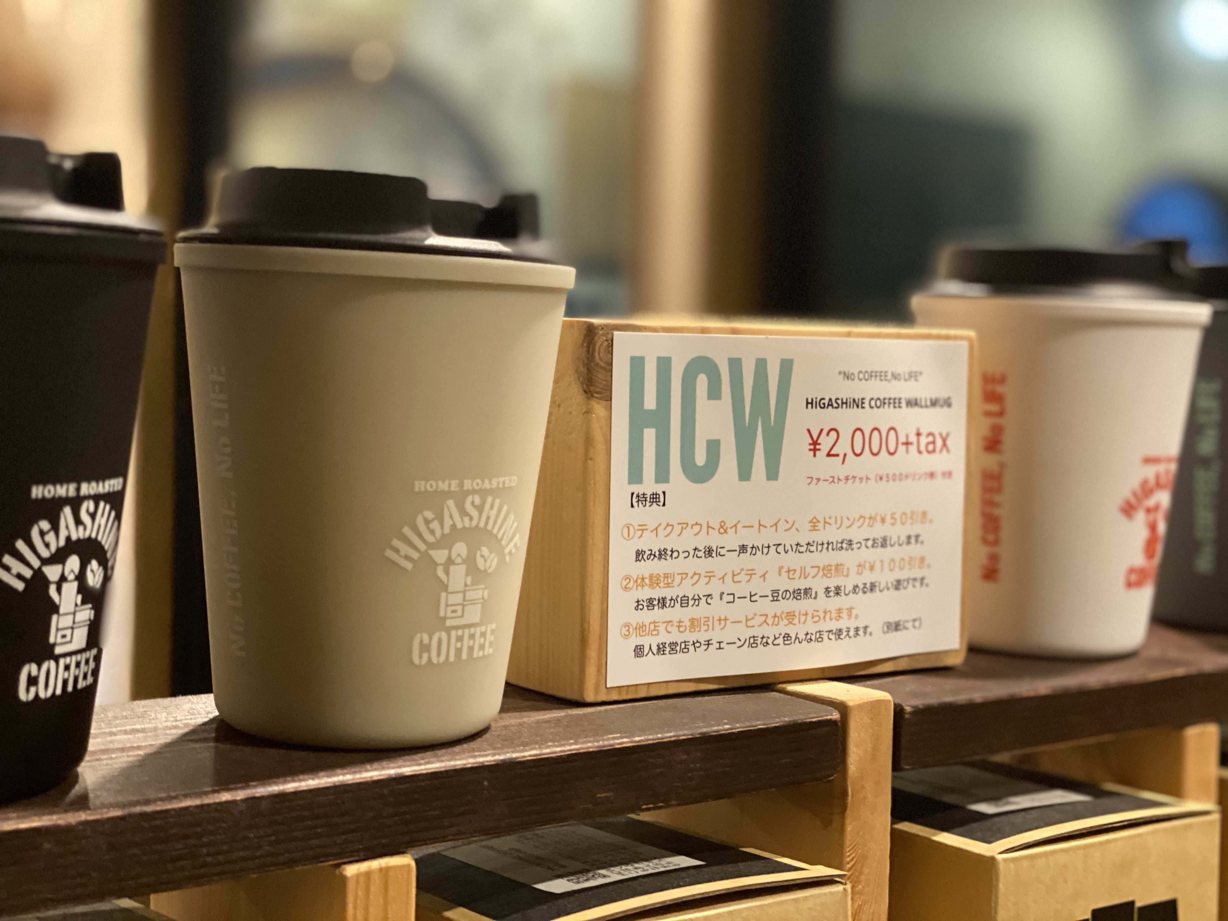 東根さん:大手のコーヒーショップのほとんどは自分で容器持ってったらコーヒーが安くなるんよ!タンブラーとか。で、うちもオリジナルのタンブラー作ってて、それを持ってきてくれた人にはうちはもちろん割引するし、僕が知り合いのお店にも頼んでうちのタンブラーを持ってきた人にはちょっとサービスしてもらうようにしとんよ!うちのじゃなくてもよくコーヒーショップ行く人は持っておいてもいいと思うよ!