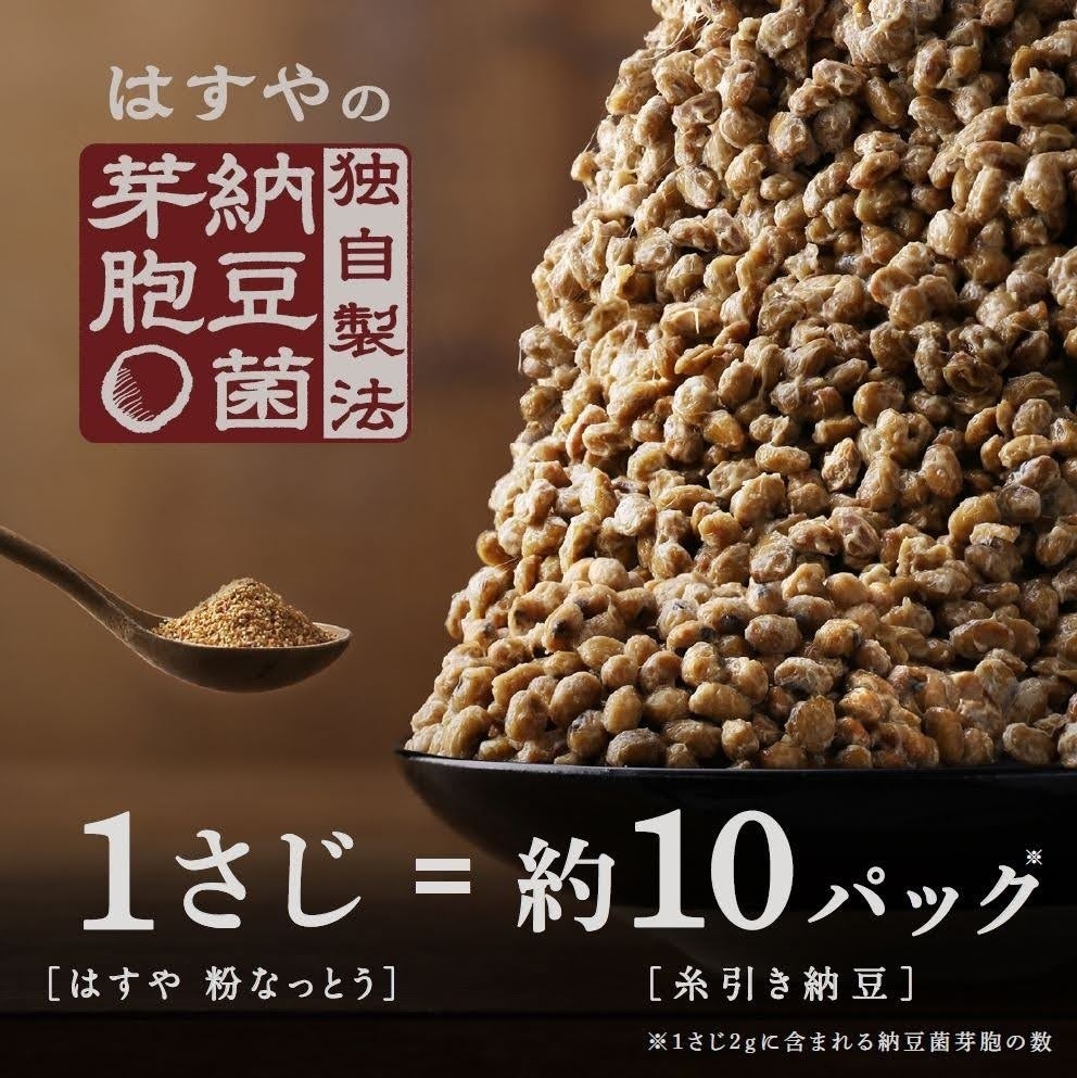 それから養鶏場さんにその粉なっとうを持って行って使ってもらうと、ヒナが凄い元気に育ったと言ってくれて、、原因を調べてみると、粉なっとうには小さじ1杯で納豆10パック分の納豆菌が含まれていることがわかりました。そこから動物用ではなく人間が食べられるようにも作ってほしいとの声がかかり、ここ20年は人用に製造販売するようになりました。