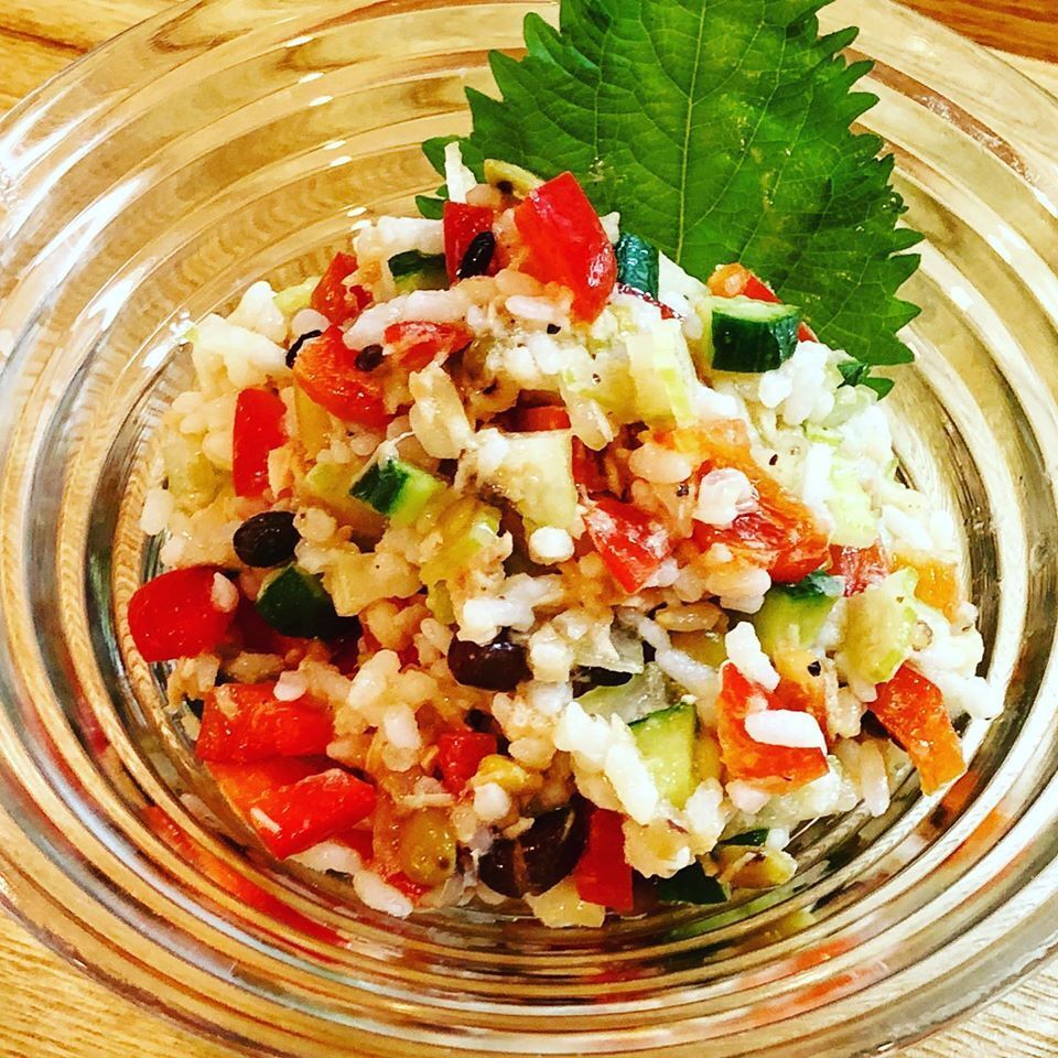 いろいろ野菜と一緒にライスサラダに