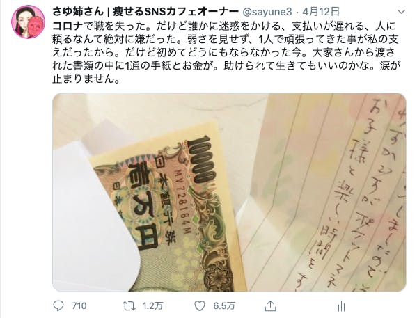 思わず本音を漏らしたツイートで、Twitterのアイコンの中にも人がいて、その人達には温かい心があるという事を思い知ったのです。