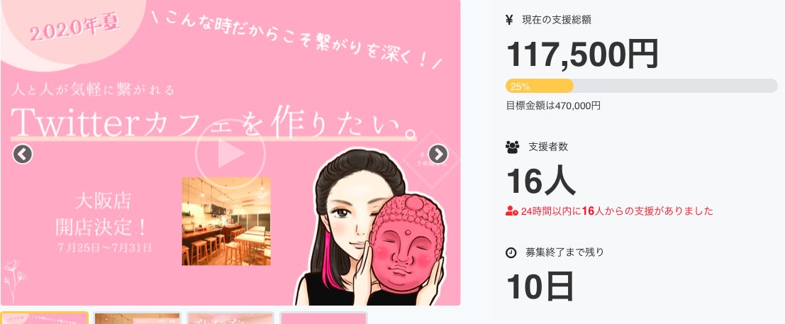 開始40分で100,000円を達成しました!