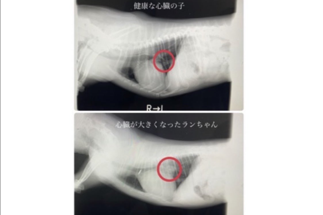 ランちゃんの心臓は弁がしっかり閉じず全身に血液を行き渡らせるポンプの役割をする心臓から血液が逆流してしまっている状態なのだそうです。