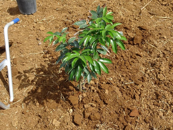 2017/07/22 11:53昨日、ライチの取り木施行を14枝に マンゴー収穫後のスキを見つけてササッとしたつもりが、さすがにハウスの中は暑くなり始めて、 何とか終了。 そして今朝も収穫後に鉢上げしてあったライチ3鉢を定植 穴掘りしてココピートを入れて 根もしっかり張っているので問題ないでしょう。 周りに再度ココピートを入れ、土を戻し、水をタップリ与えて終了。 今回のライチは太めの枝を取り木し鉢上げしたものだったので、しっかりしている。 潅水さえ毎日してればしっかり根付くでしょう。 たった3本の定植だが汗が滝の様に流れた。今晩は足がツルかもしれない・・・ もっと見る
