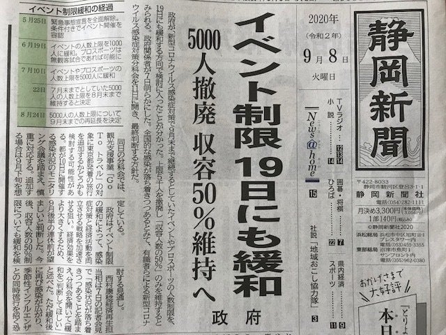 新聞に19日にもイベント規制の緩和が報道されました~!!コロナ禍でいろいろ規制されいたものも、ちょっとずつ解放されてきたかな~★いよいよ、11.3が楽しみになってきました。勿論、ちゃんとした対策はしていきたいと思いますよ~