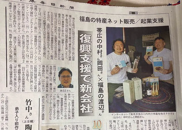 今回のプロジェクトは福島原発近郊12市町村の1つ川内村出身で震災後に地元に戻り、復興の為に尽力を尽くしてた渡辺と、約12年間インターネット物販と制作をし、自らの経験から地方でも成功できるインターネットビジネスの可能性を感じ、いつか町興し、地方創生をインターネットでしようと思っていました岡田(北海道在住)、中小企業庁の地方創生事業「ふるさとプロデューサー」の肩書を持つ中村(北海道在住)の3名のプロジェクトとになります。