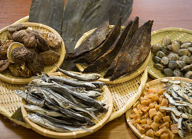 味楽家の幸せだしは余計なものを一切使わない、素材が持つ旨みだけでとる本格だし。