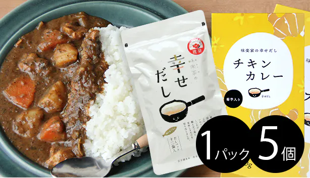 味楽家の幸せだしを使った 菊芋入り味楽家の幸せだしチキンカレー 5個セットと味楽家の幸せだし12パック入り1袋のセット