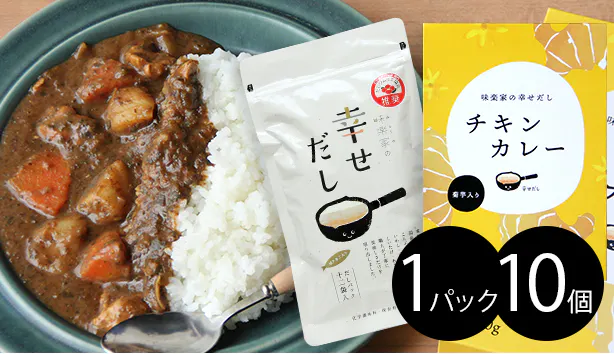 味楽家の幸せだしを使用した 菊芋入り味楽家の幸せだしチキンカレー10個と味楽家の幸せだし12パック入り1袋のセット