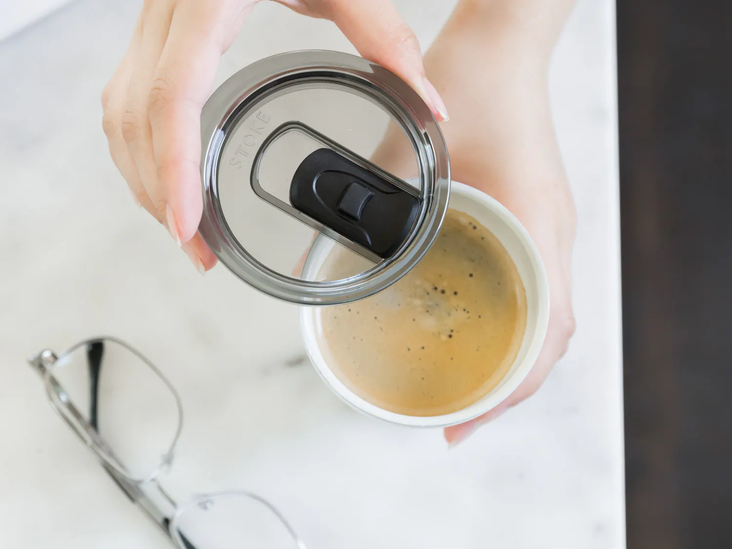 タンブラーとしての利用を可能にする、リサイクルプラスチックで作られたSTTOKE LID (蓋)