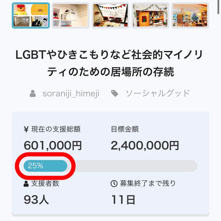 目標金額は家賃2年分の240万円ですが、クラウドファンディングはあと11日、なんとか達成率50%の120万円、家賃1年分に届きたい!お願いします!!