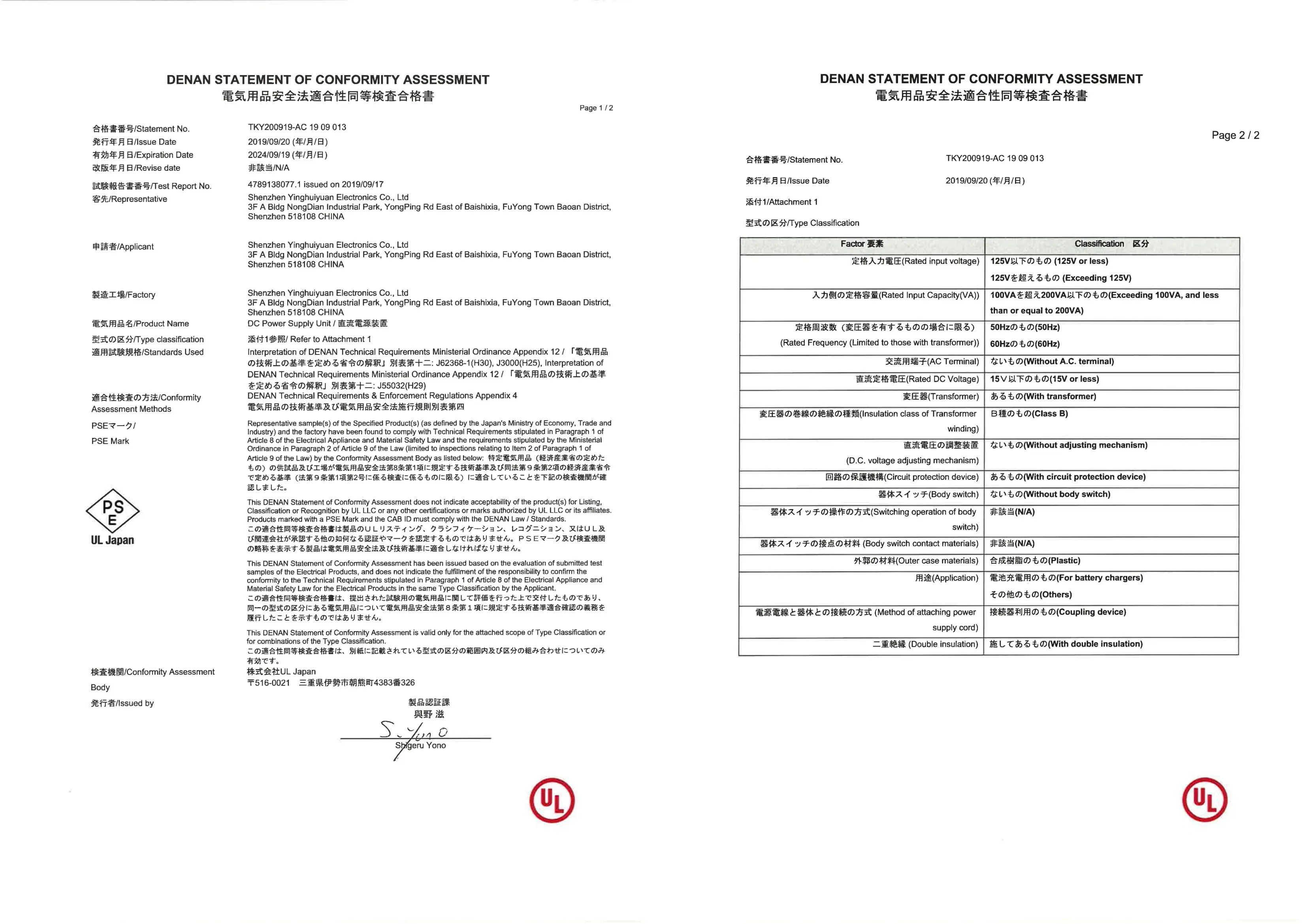 すでにPSE認証は取得済みとなっておりますので、製品にも表示がされた状態でお届けします。