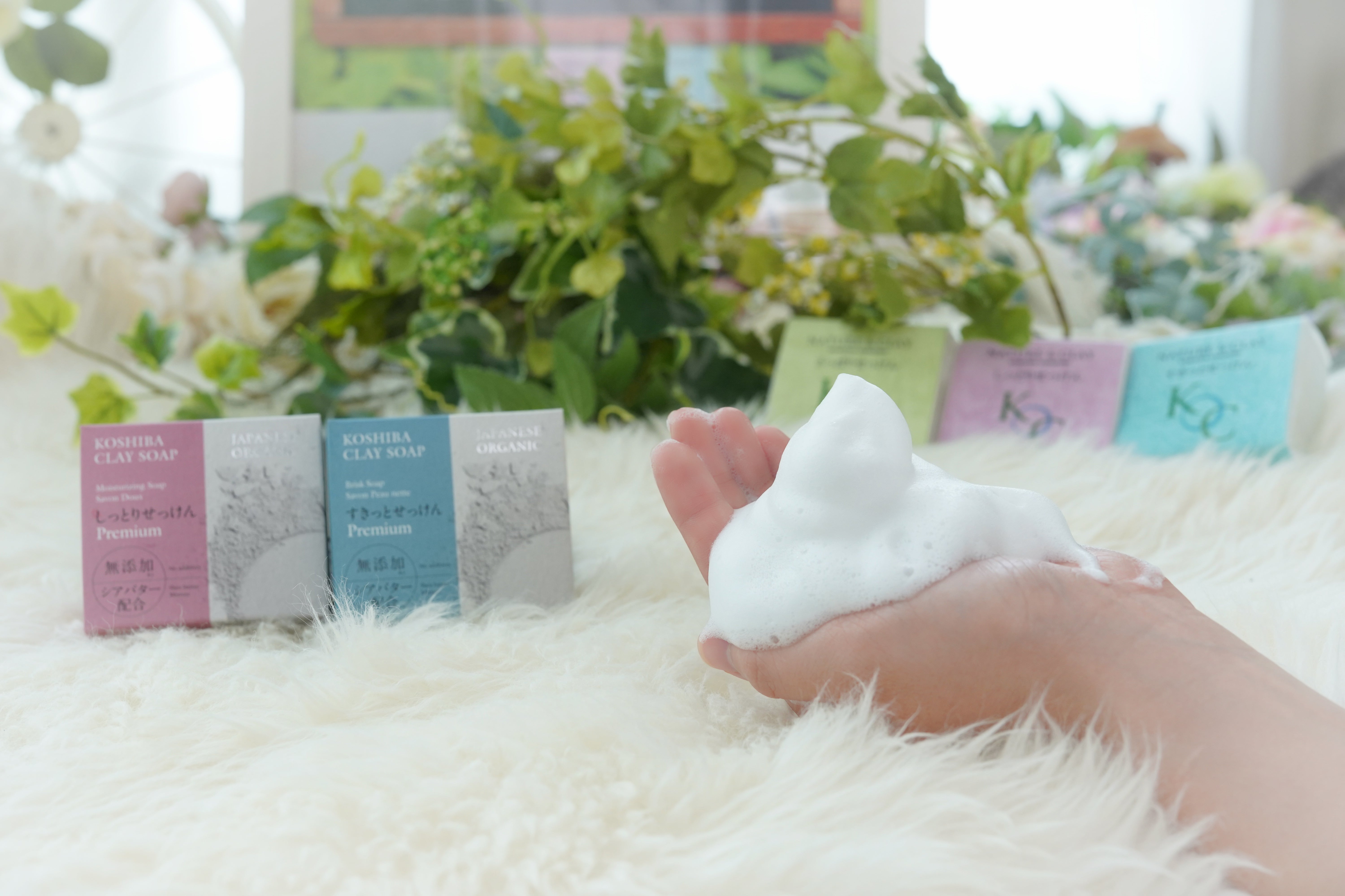 石鹸の配合には、クレイミネラルズ水(KOSHIBAクレイを濾過した水)と実の精油で作られています。これのみで綺麗になる効果があるのです。
