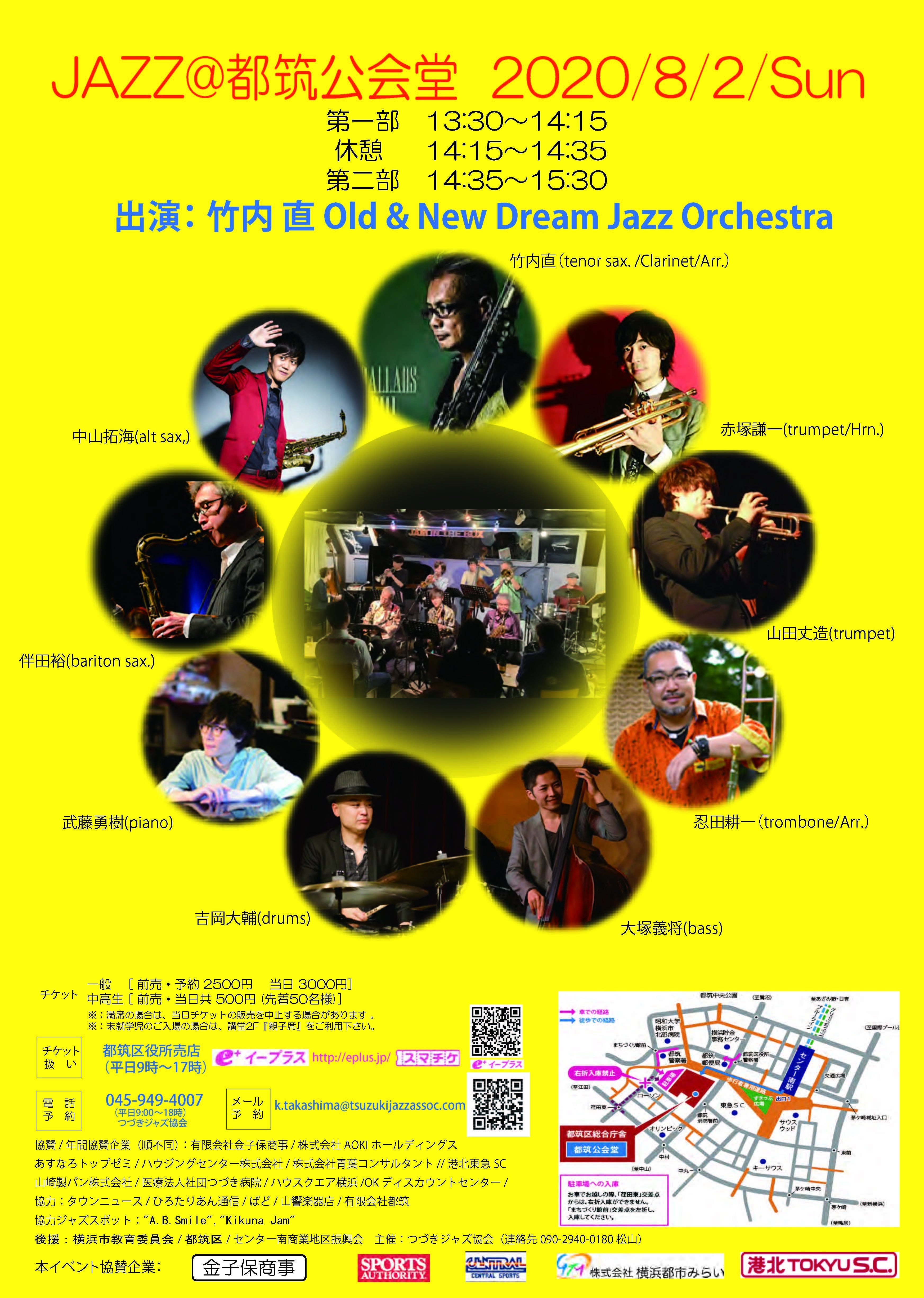 緊急事態宣言解除と共に、公共施設の利用条件が刻々と変化しました。その為に、事業計画の見直しが度重なりましたので、今回の募集の時期が7月1日から31日、そして翌週の8月2日がコンサート開催となります。8月2日「JAZZ@都筑公会堂2020」 の収録画像を編集後、8月中旬に配信予定です。