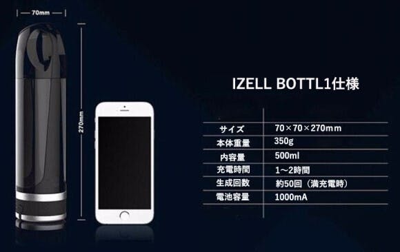 IZELLボトル1の特長・3 水素大容量の1000ppb