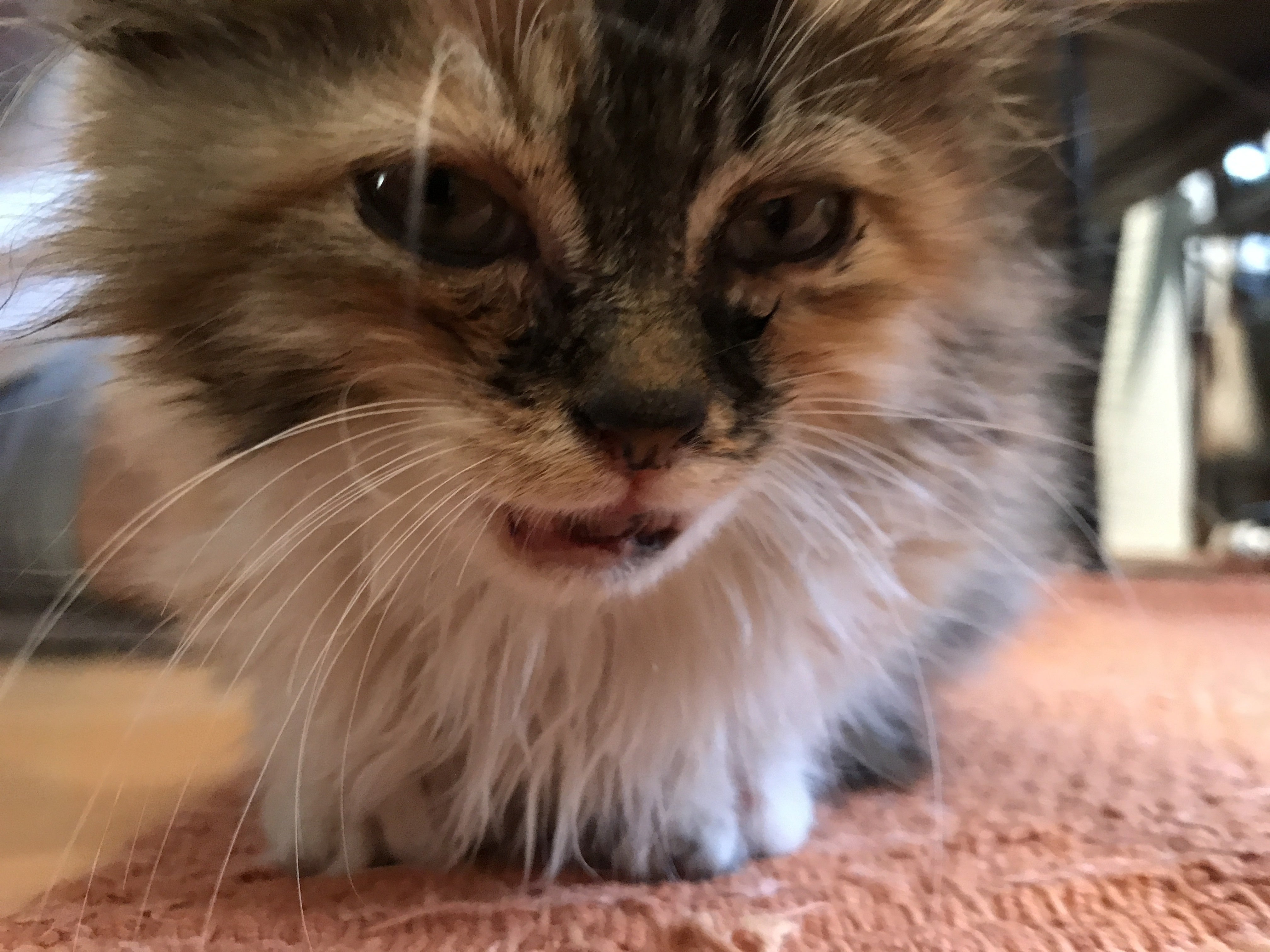 現在のミーちゃんは、少しづつですが徐々に体力も回復し、時より子猫らしい人懐こい様子を見せるほどです。なんとしてでもこの可愛いミーちゃんのケガを治してあげたいと思っています。ぜひみなさんのご協力お願いいたします。
