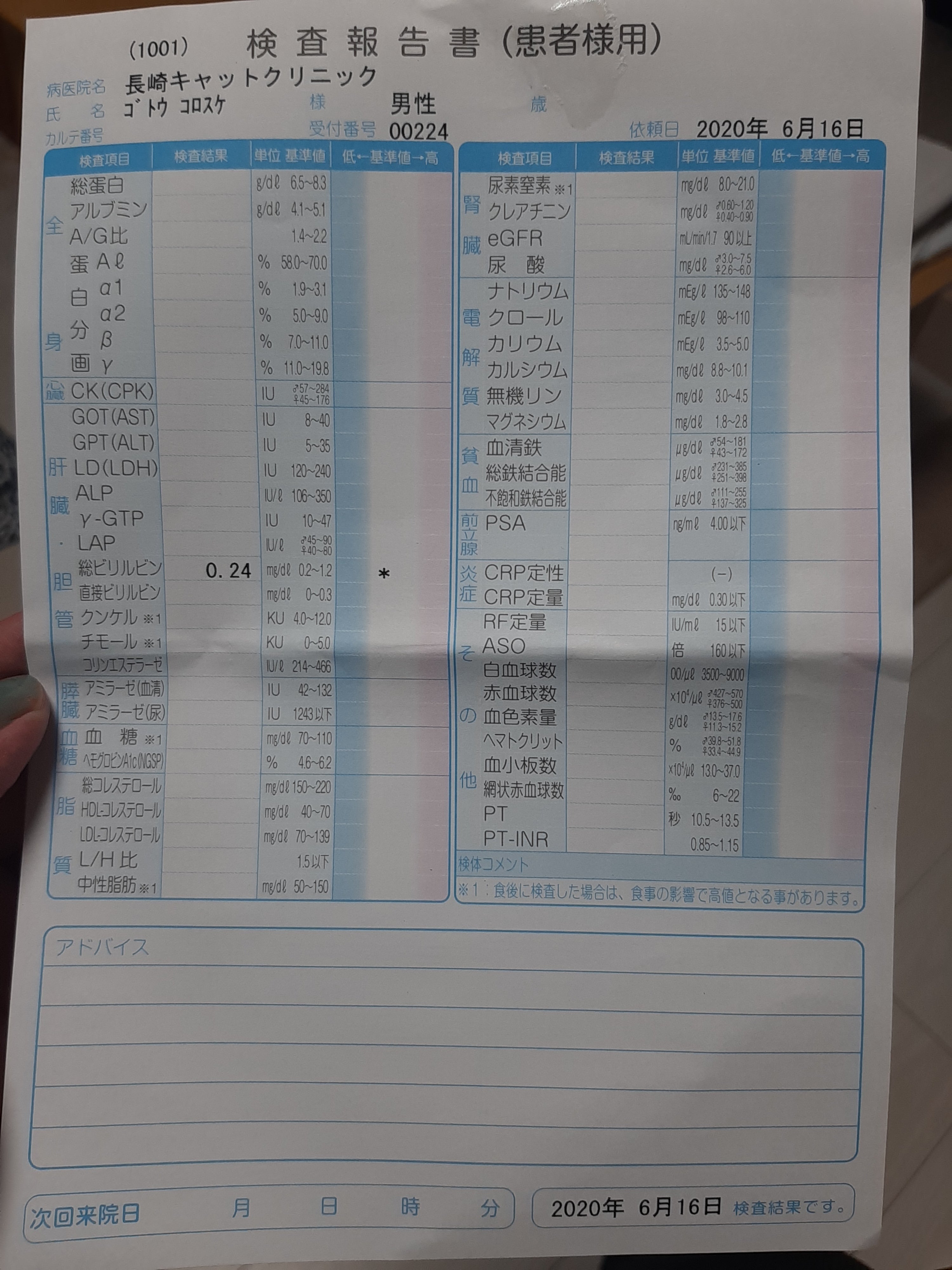 追記: FIP診断結果の用紙は口頭のみで結果を知らされた為まだ頂いておらず、画像データが添付出来ませんでした。