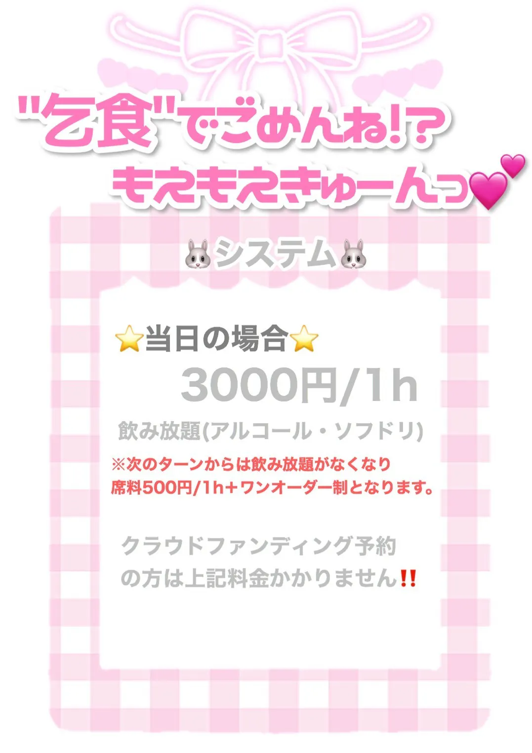 コースにもよりますがお迎えチェキやウェルカムドリンクコール付きシャンパンなど予定しております