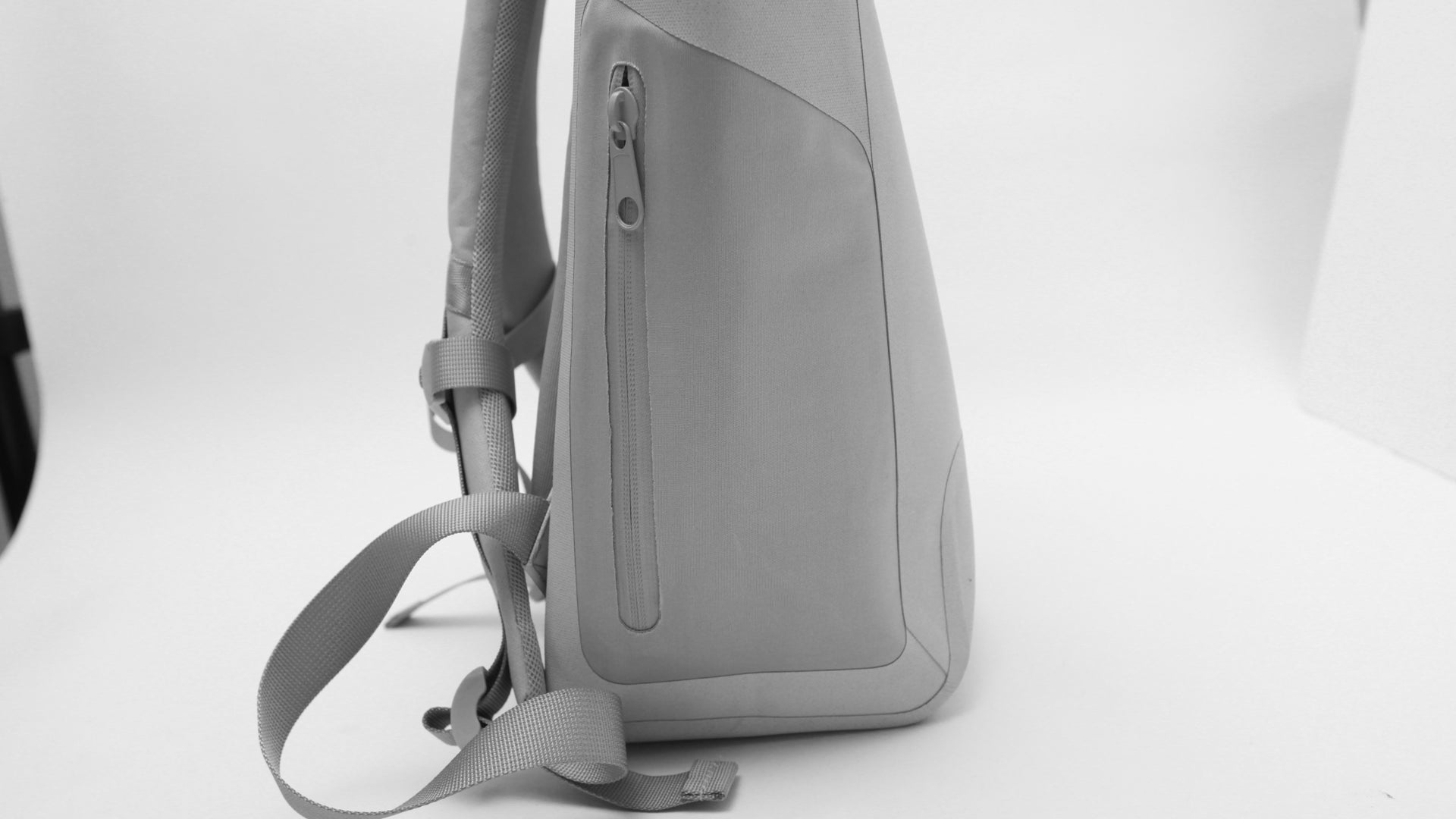 機能性の高いバックパックは、通常だと生地が分厚くなったり部品が多くなったりして重たくなりがちです。しかし、Waterproof bag "Get Set" はなんと500gを切る超軽量!