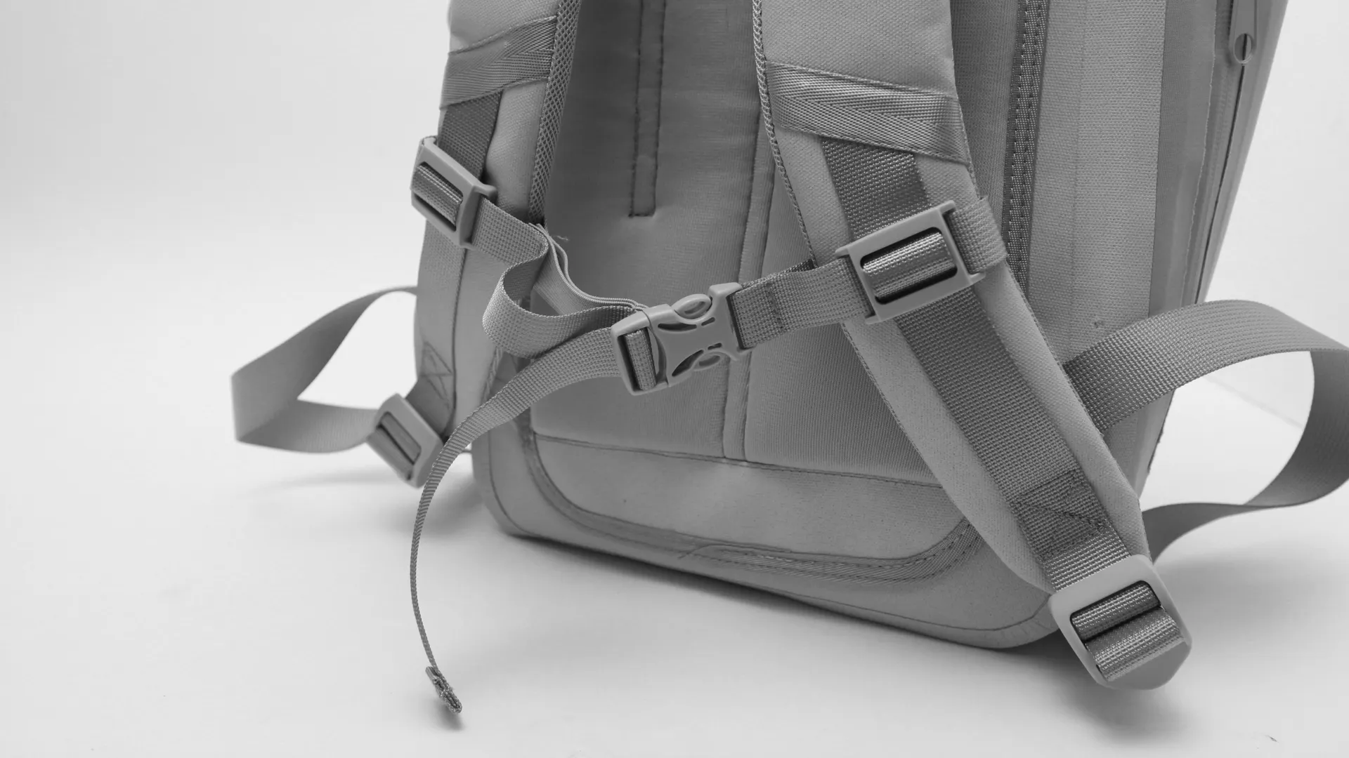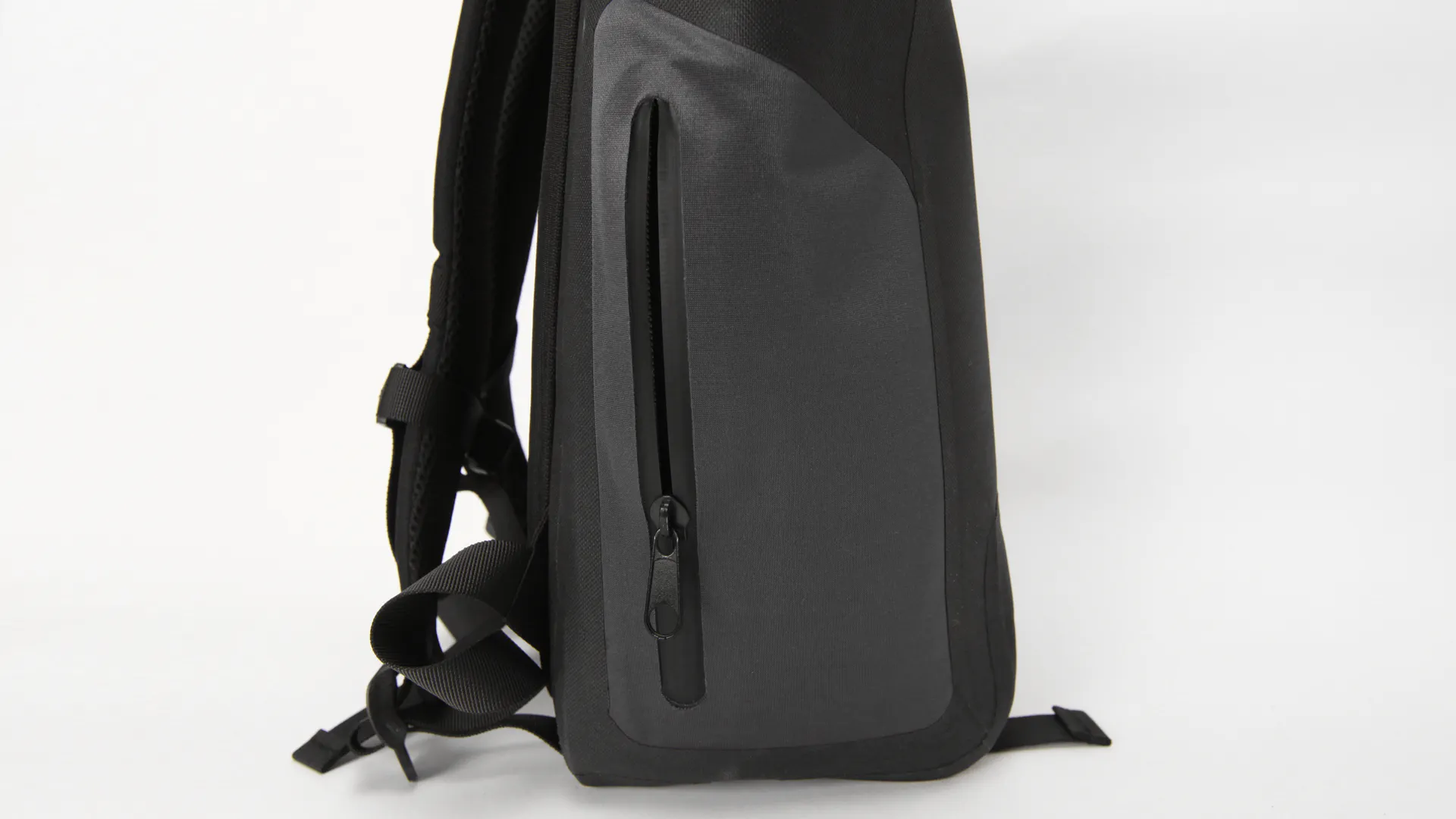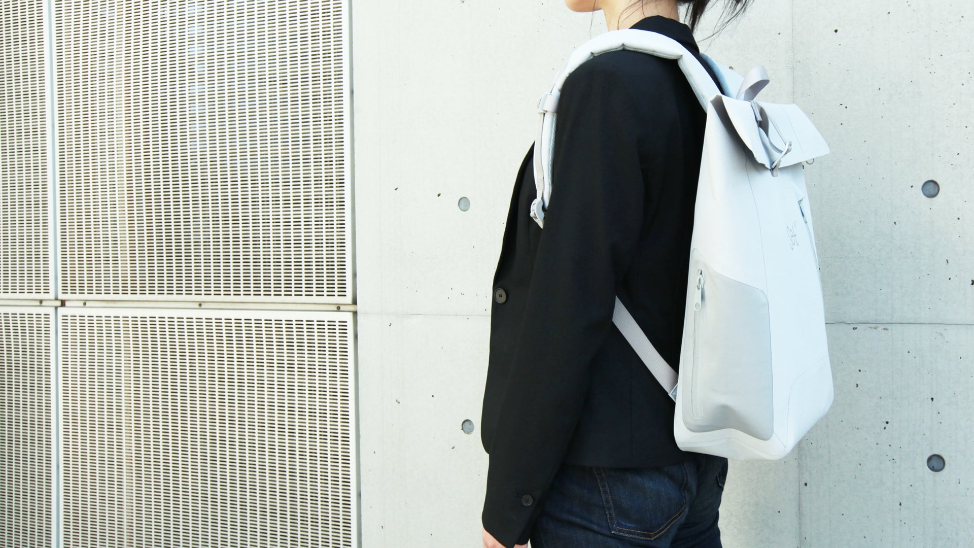 Waterproof bag "Get Set" は、余計な装飾をなくしたすっきりとしたデザインが特徴です。どんな色にでも合うグレーとブラックの2カラーで、お持ちの服装やアイテムにもしっかり馴染みます。