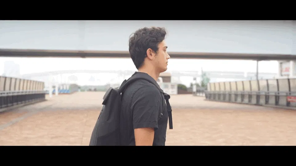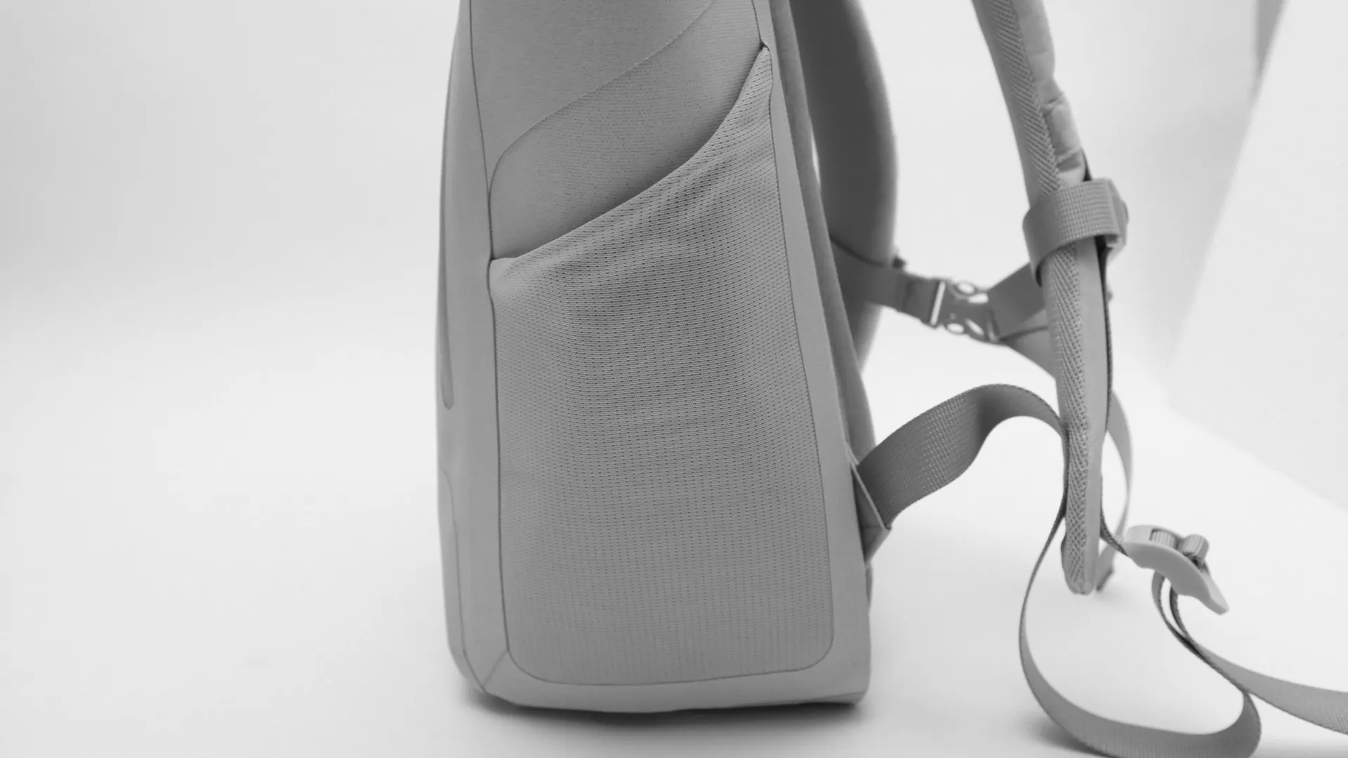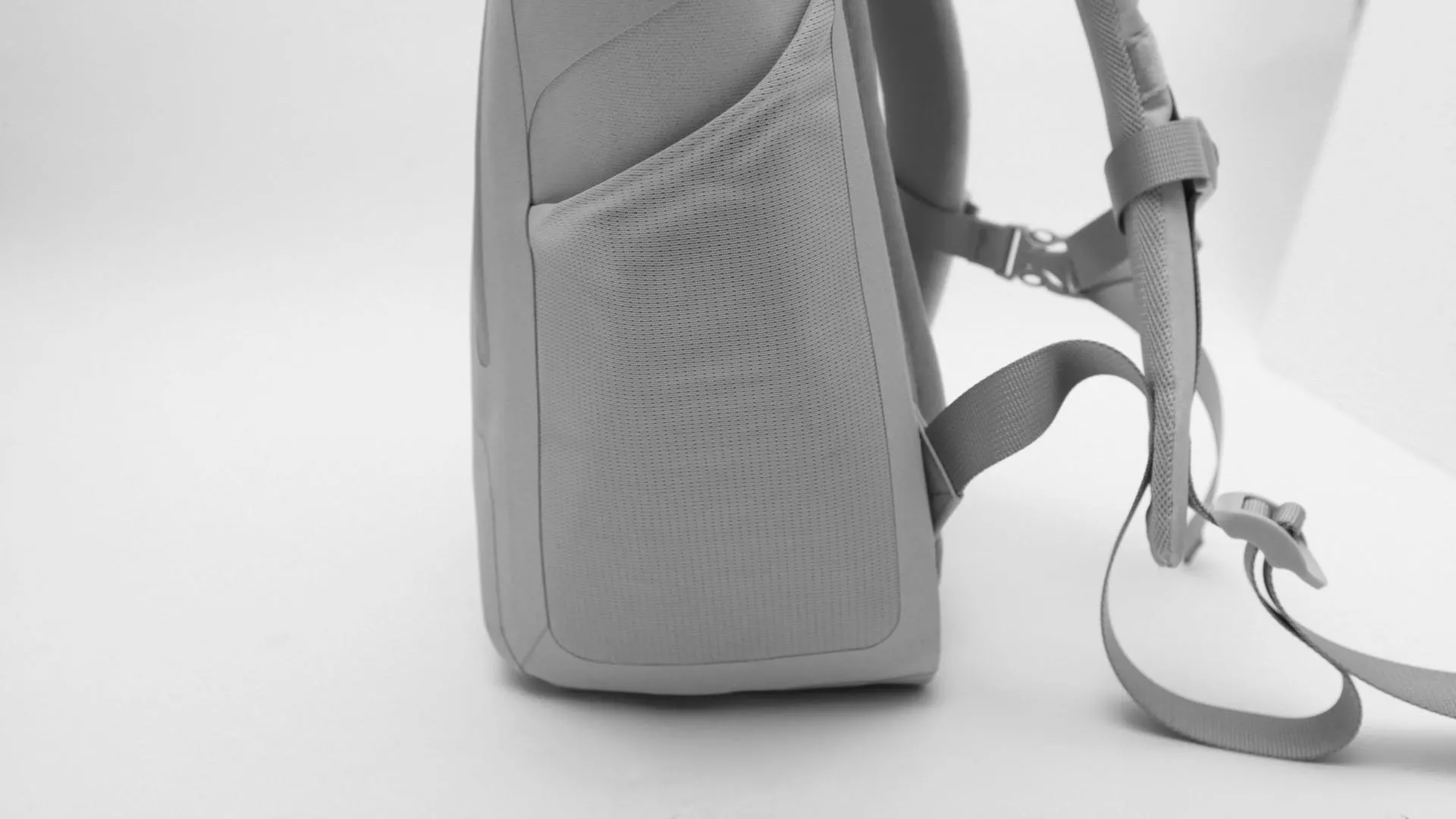 シャープさのあるフォルムでアクティブな印象。筒状の袋のような形状で、どんなものでもざっくり詰め込めます。嵩張る荷物もロール部分を伸ばせばしっかり収納。16インチPCもジャストで収納できます。