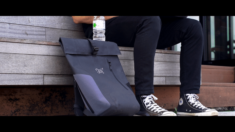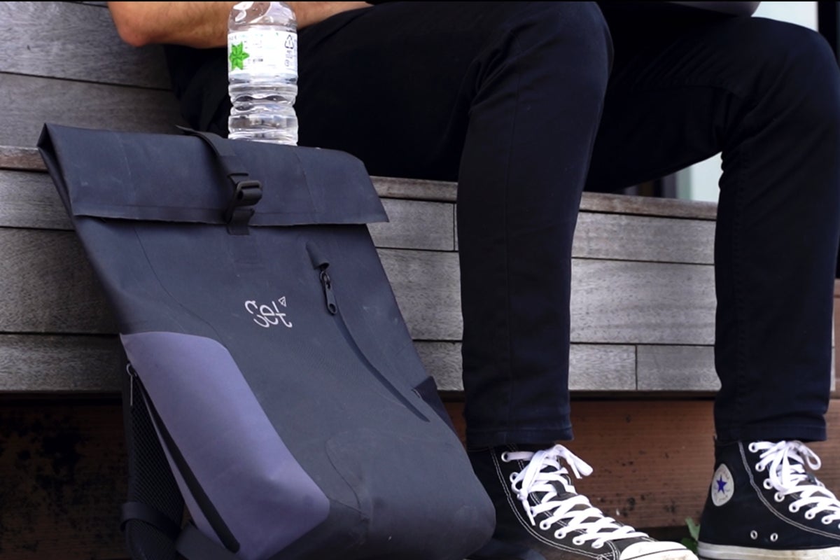 Waterproof bag "Get Set" は、突然の大雨にも真夏の台風にもびくともしないIPX6の防水基準をクリアしています。さらには背負っていることを忘れるくらいのたった490gという超軽量。