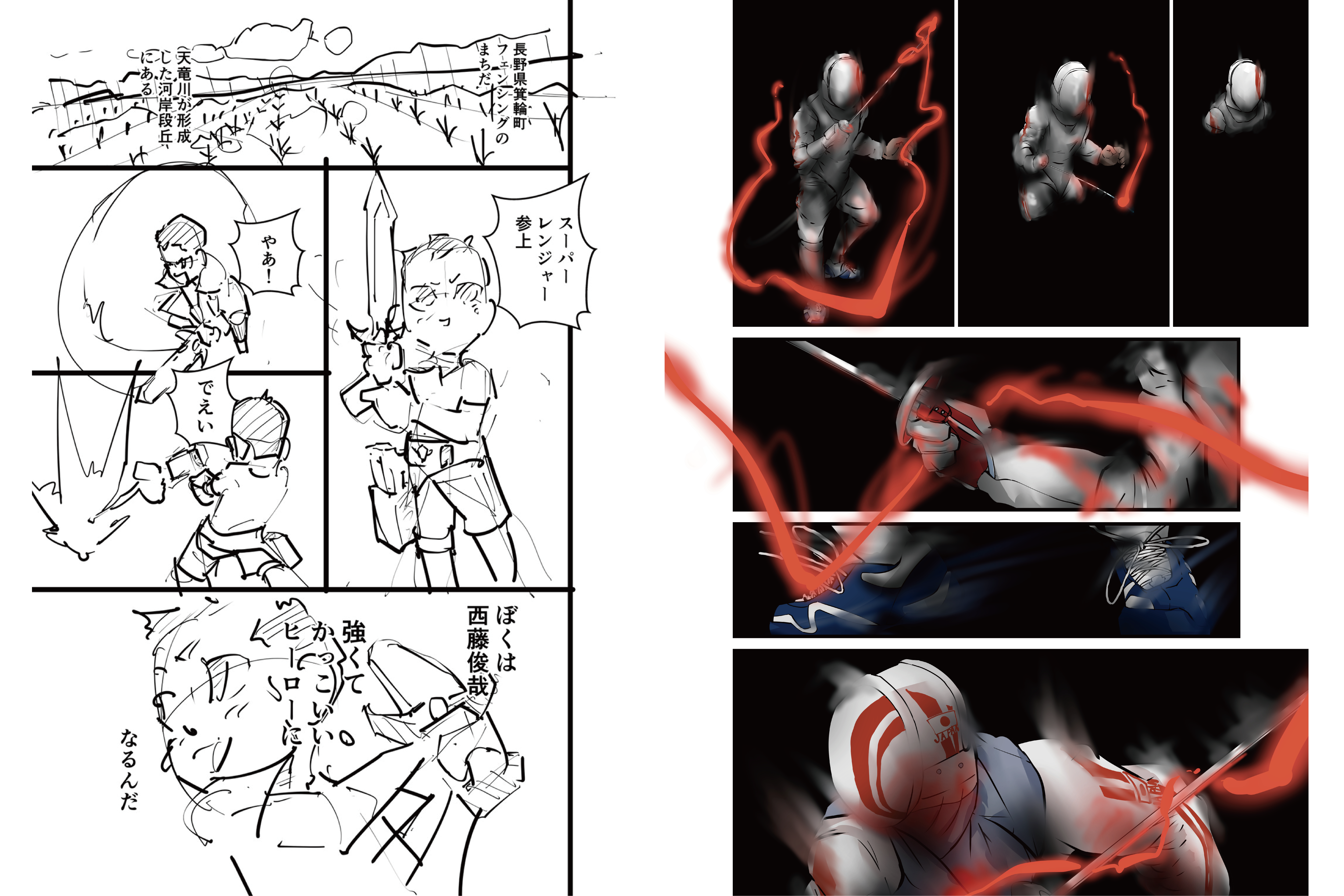 西藤選手は長野県箕輪町生まれで、同郷という繋がりで漫画アシスタント 西澤啓介 さんに フェンシング×コロナ の漫画を制作していただくことになりました。
