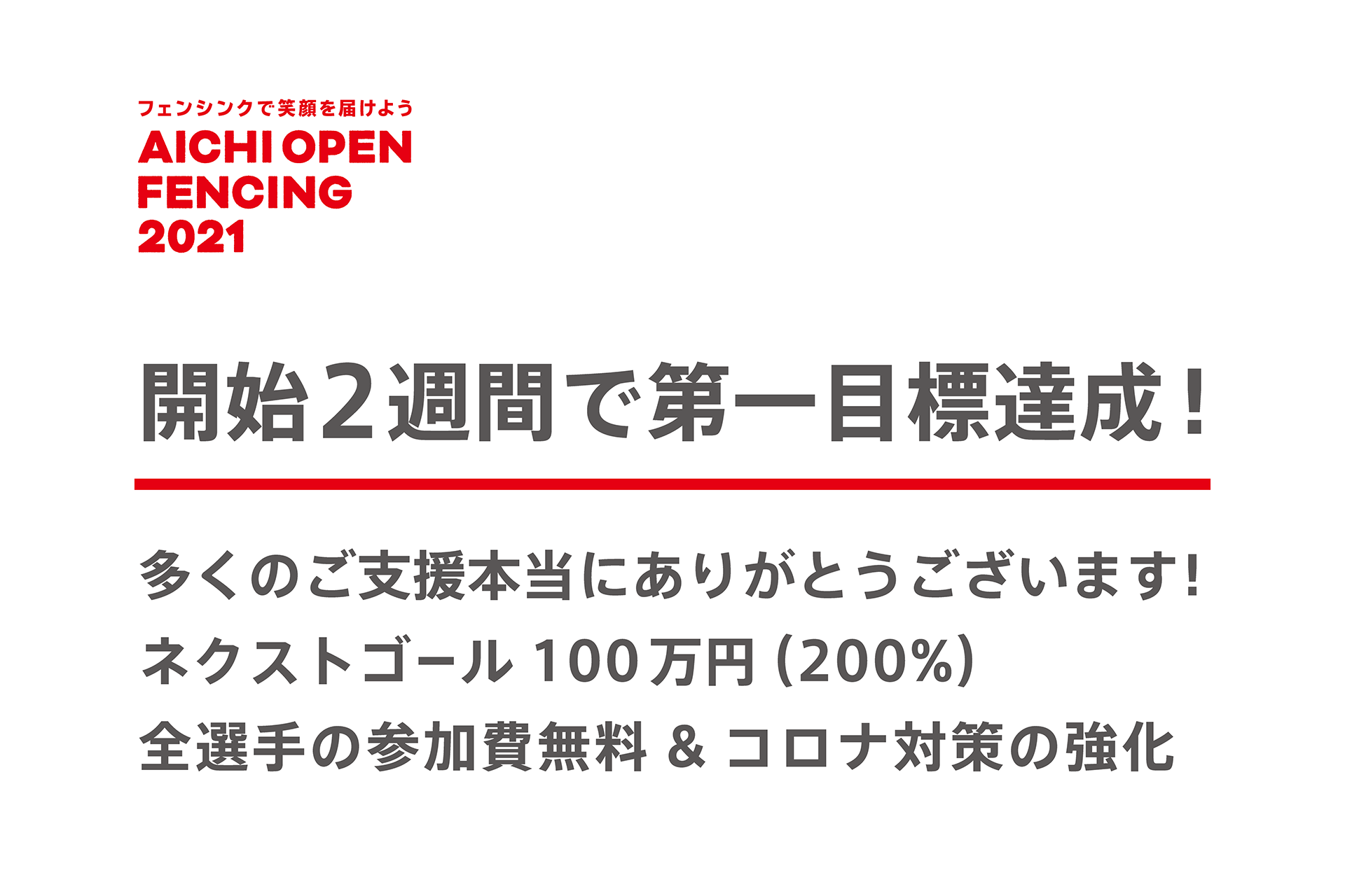 ※1 開催することができなかった場合は、2021年6月11日〜13日開催の日本最大のフェンシングイベント『2021 AICHI Fencing Festival』に支援金をまわさせていただきます。