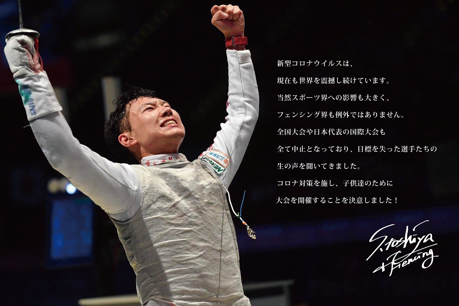 そんな中、フェンシング男子フルーレ日本代表の 西藤俊哉 選手と連絡を取った時に「子供たちに大会をつくってあげたい!」と同じ想いを持っていることがわかり、大会の開催に向けて協力をしてもらうことになりました。
