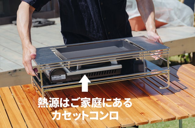そこでTEP-PAN5.0は、鉄板を丈夫なステンレス製の専用ラックに載せる仕様としました。こうすることで鉄板は常に安定し、カセットコンロのサイズとは関係なく大きな焼き面を得ることができます。