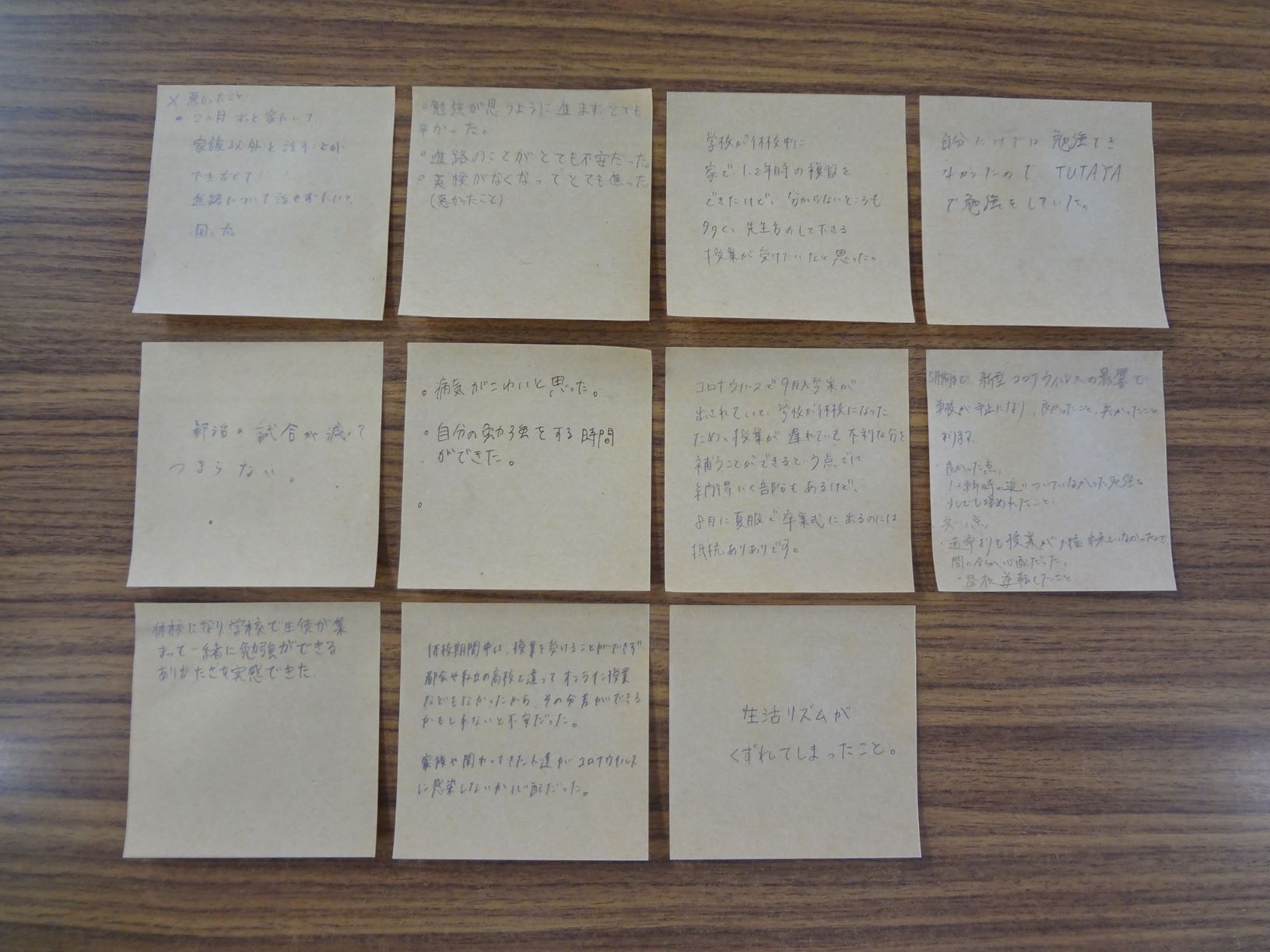 休校中の間、私たちはそれぞれに次のような思いを抱えて過ごしてきました。