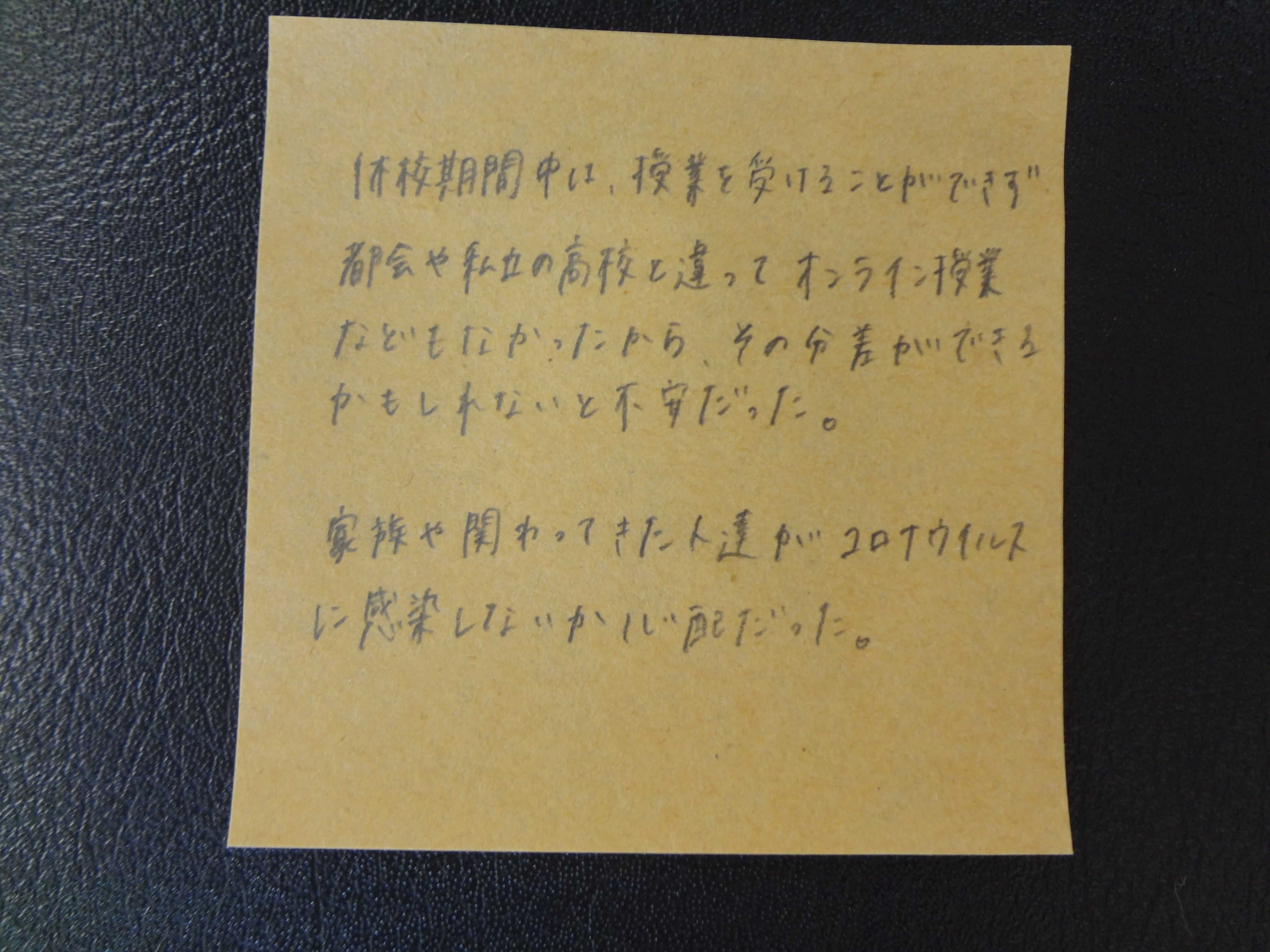 休校中の間、私たちはそれぞれに次のような思いを抱えて過ごしてきました。