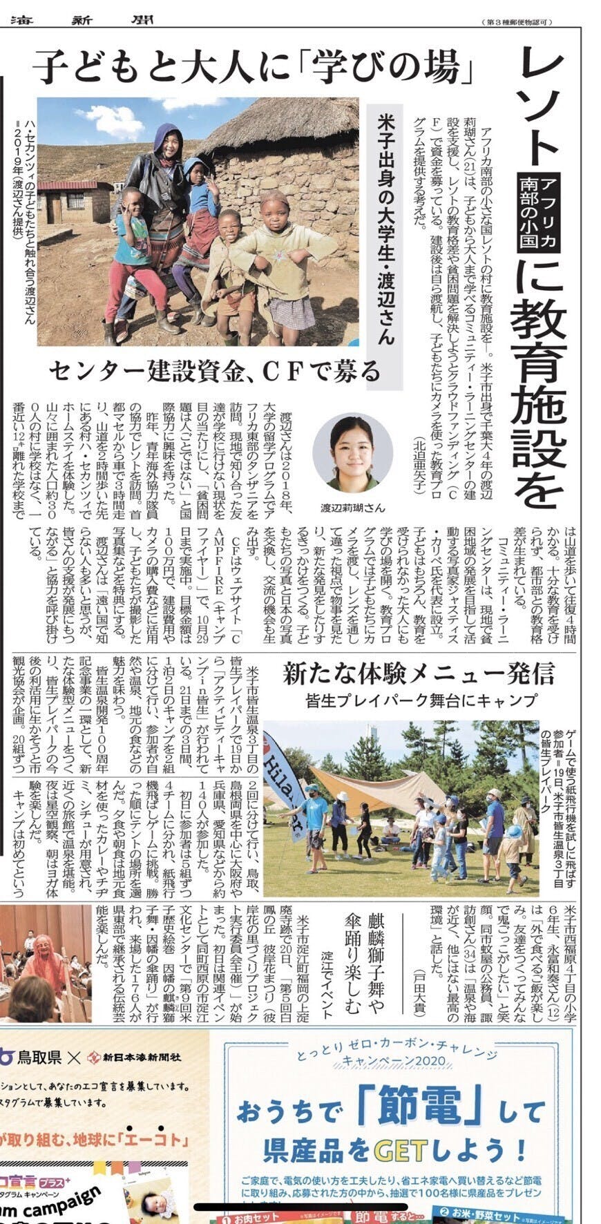レソトについて、そしてプロジェクトについて新聞をきっかけに多くの人に知ってもらえると嬉しいです。