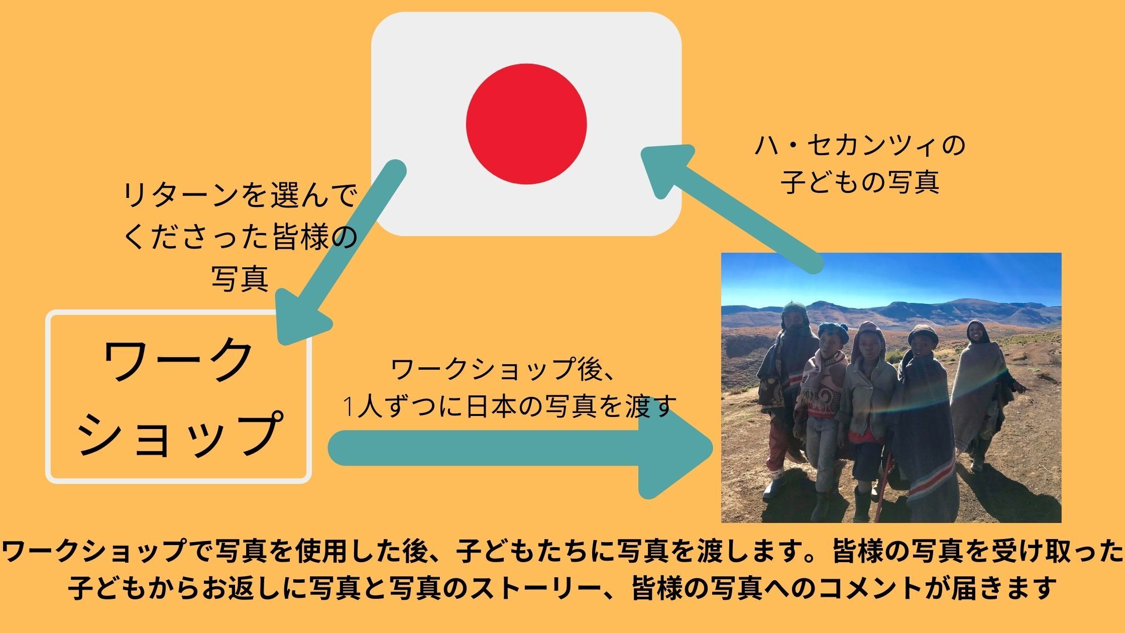 そこで、あえて情報量の多いオンラインで繋がるのではなく、”写真”という想像や推測の余地のある媒体を使って知られていないレソトと繋がることで、現在見落とされている考えたり想像したりする機会を日本にいる皆様に提供します。
