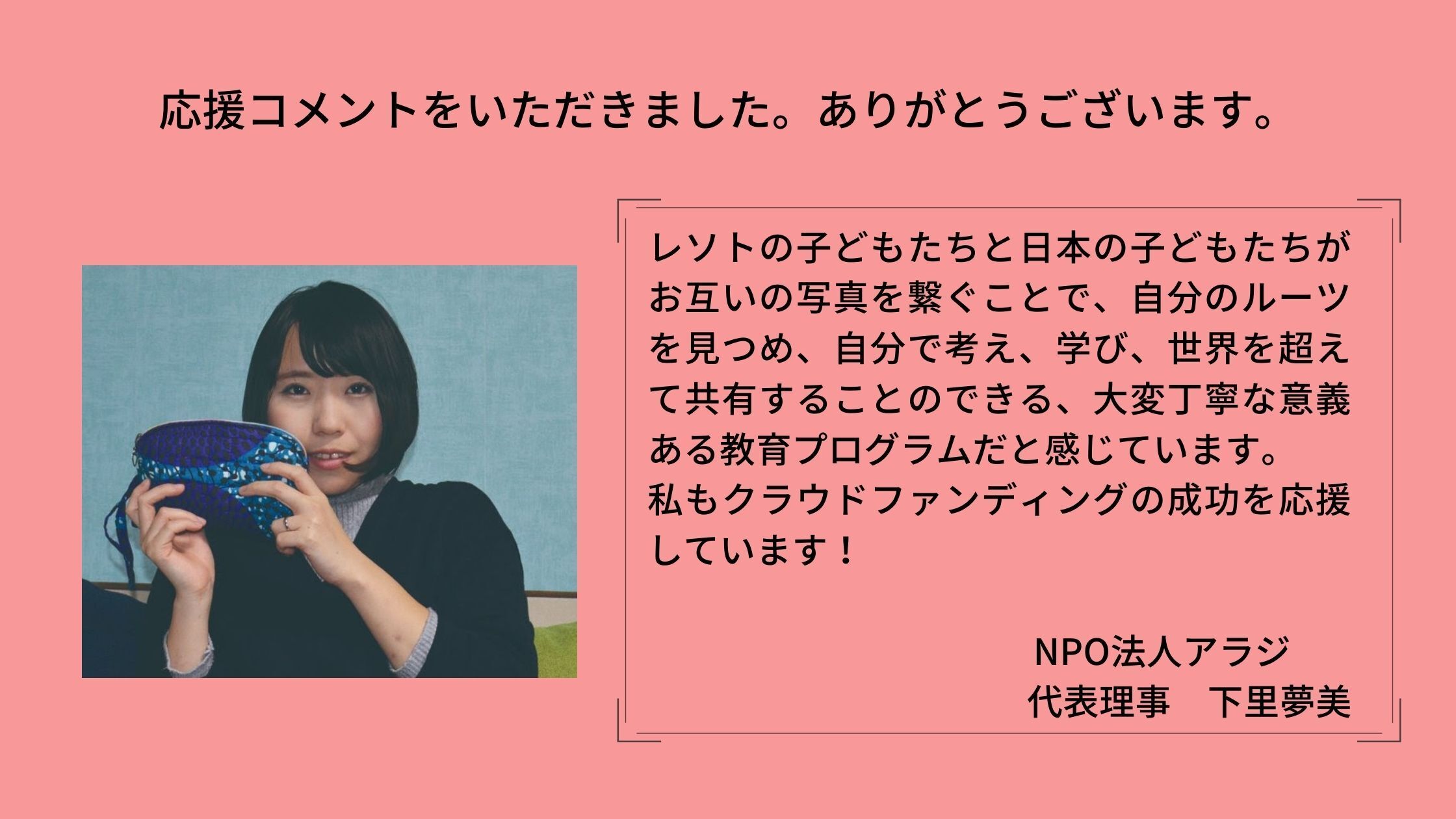 在日レソト大使館パレサ・モセツェ大使から応援コメントをいただきました。