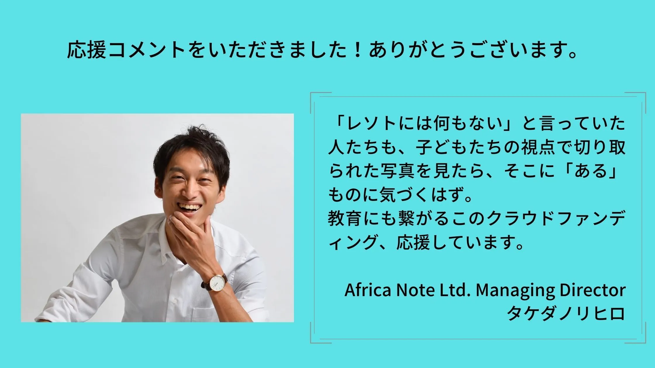 また、今日はありがたいことにタケダノリヒロ様から応援コメントをいただきましたので、ご紹介させてください。