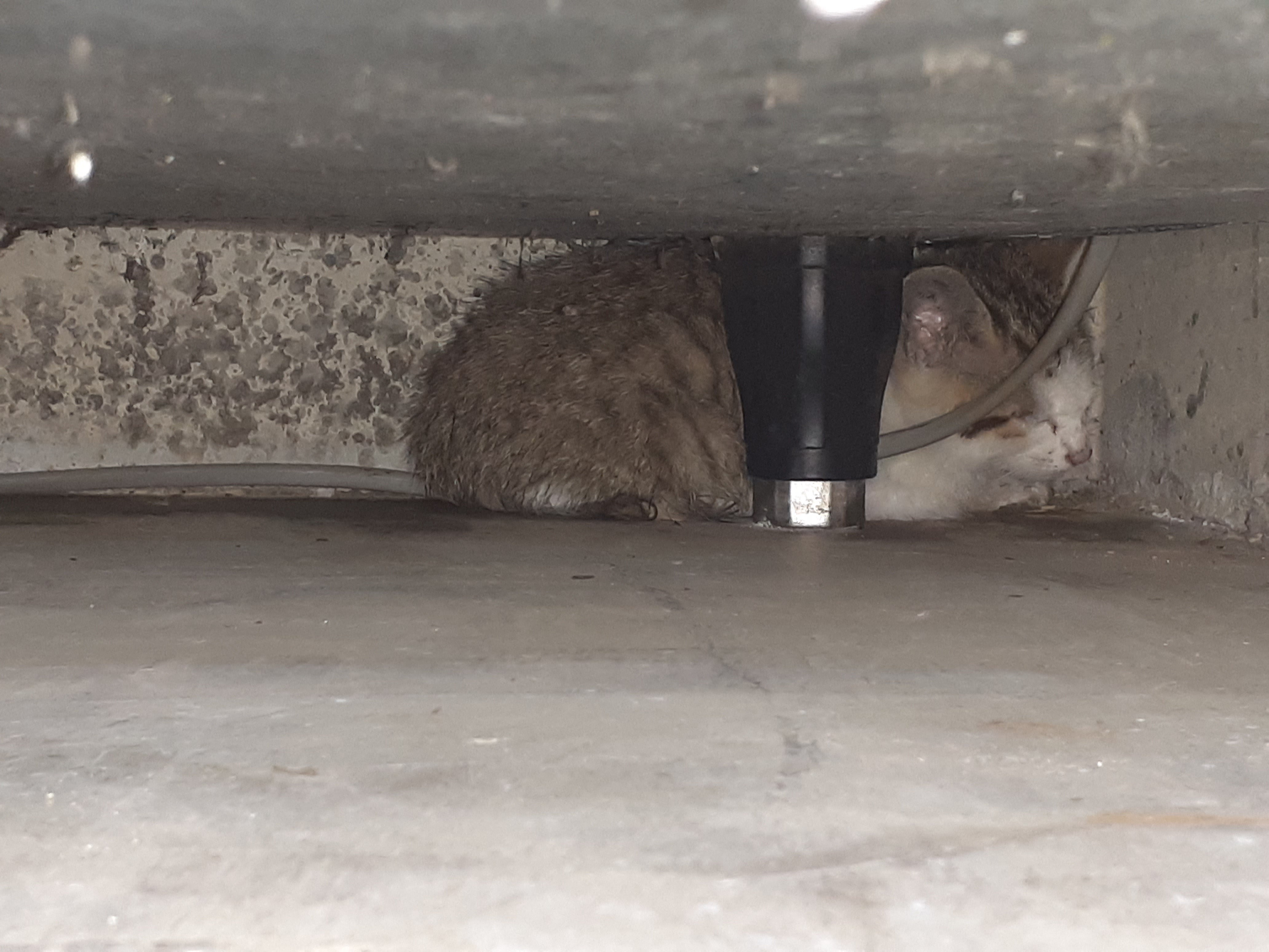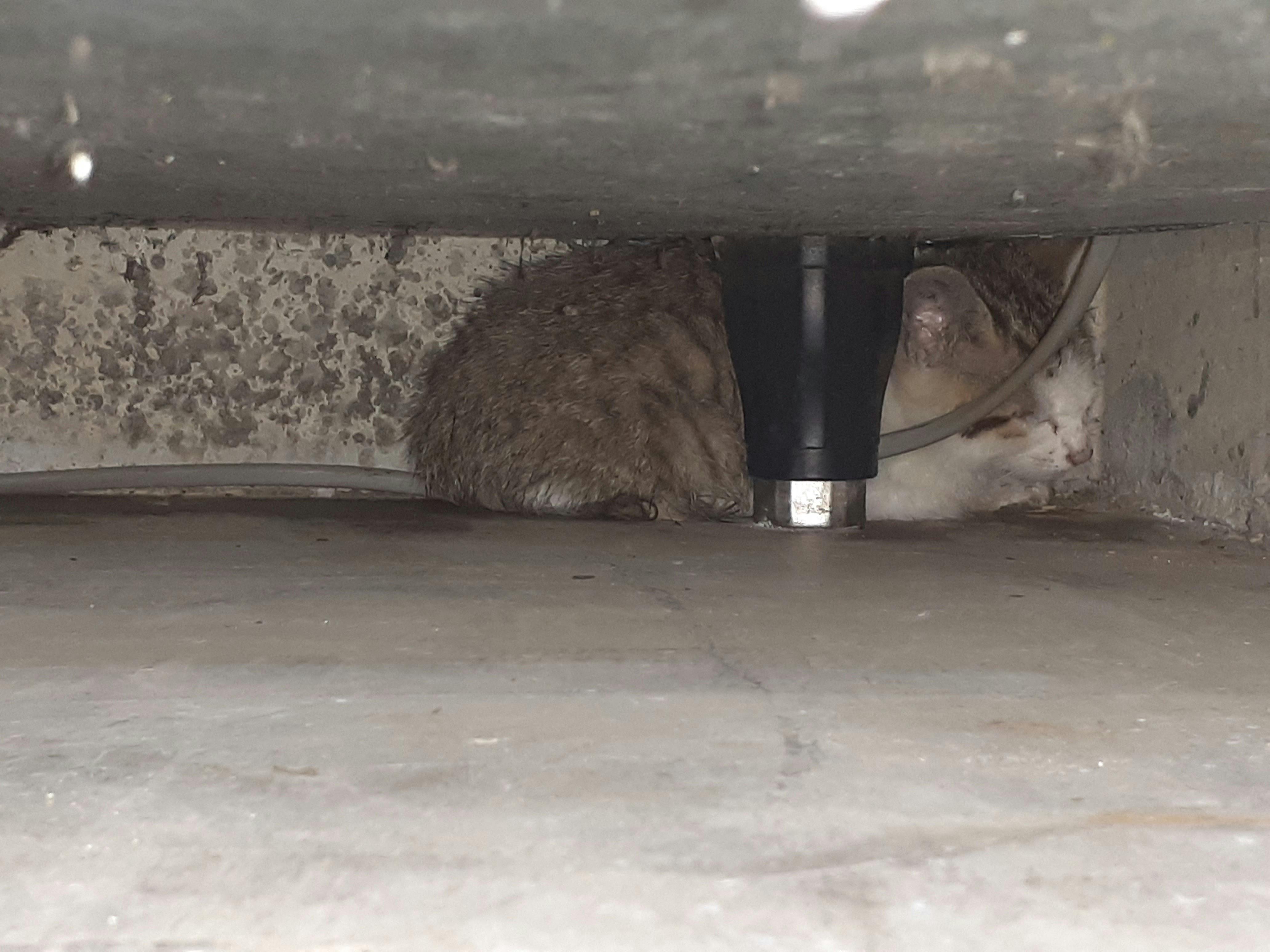子猫が、冷蔵庫下の隙間に隠れていました。