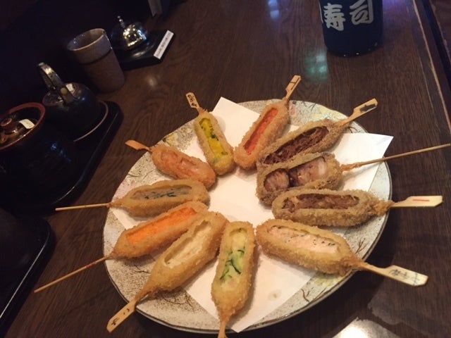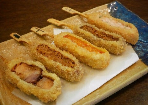 寿司屋なのに串かつ?とよく言われますが最初は豚のバラ肉を三日間煮込んで串かつにしたのがはじまりで他には無いここでしか食べれないオリジナルの串かつを開発し今では10種類以上の串かつを開発しています。