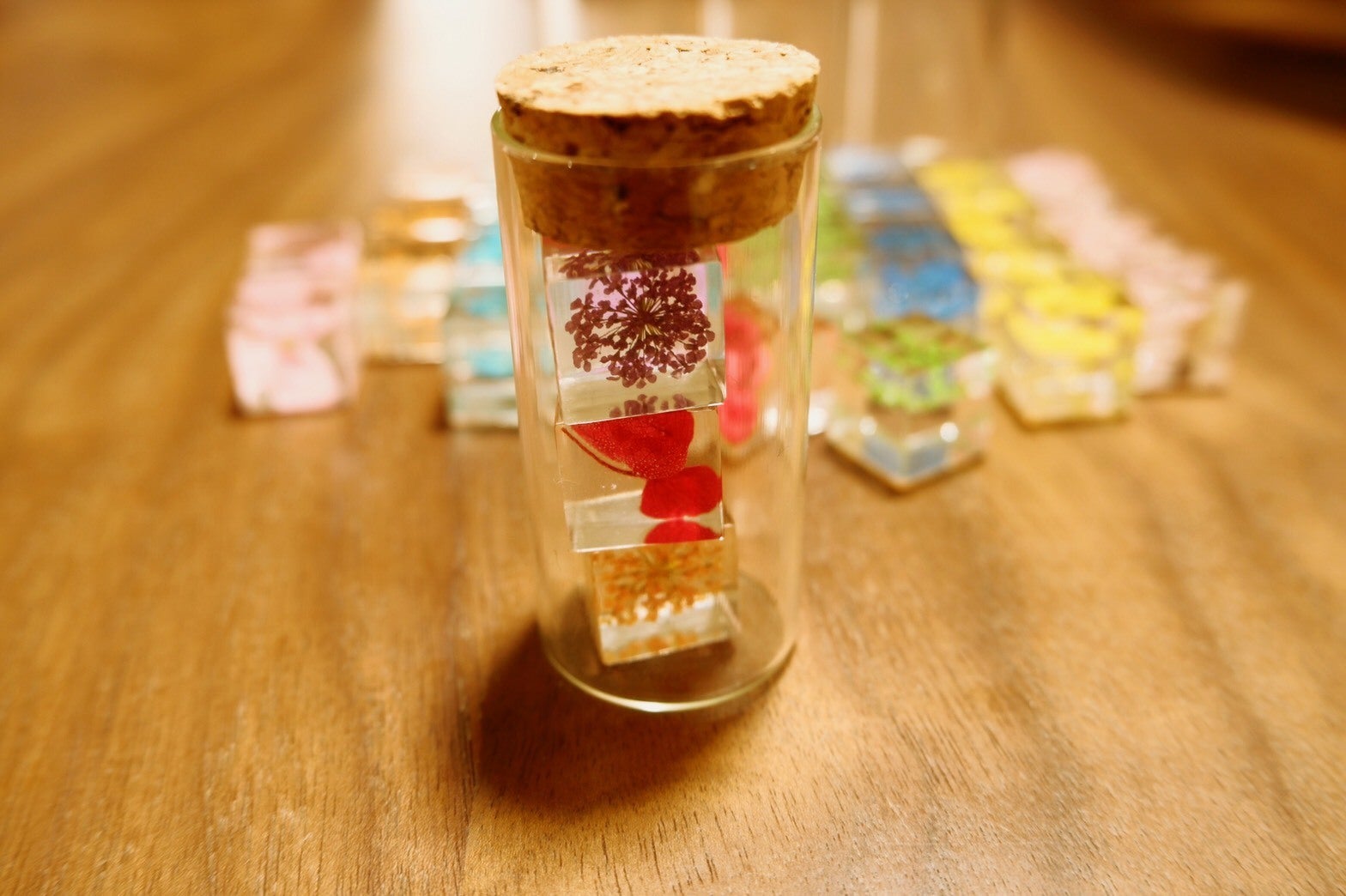 ハーバリウムとは、ドライフラワーなどをガラスの小瓶に入れ専用のオイルに漬けた観賞用のアイテムです。