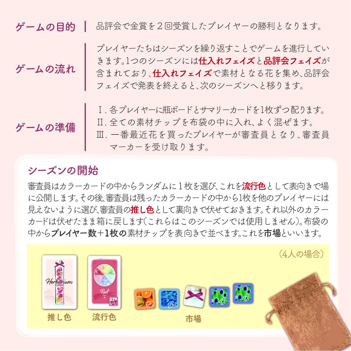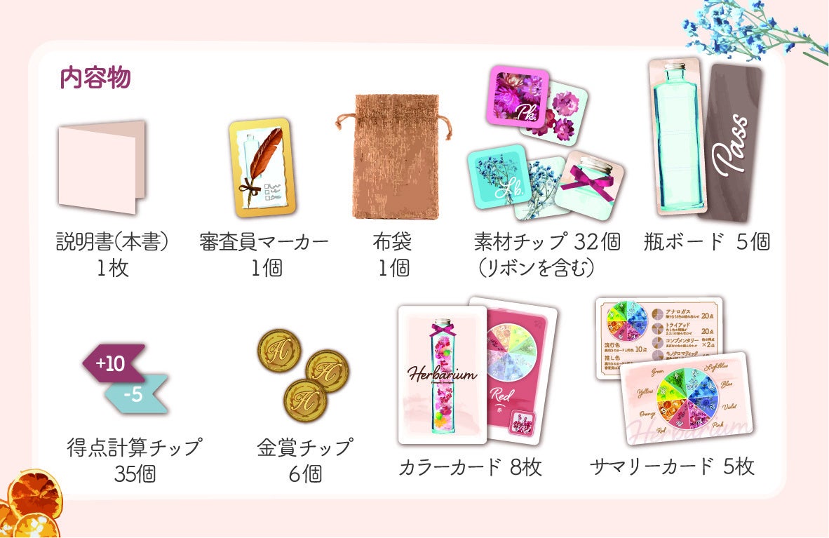 『Herbarium』はそんなハーバリウムのデザイナーとなって誰よりも美しいハーバリウムを作ることを目指す、思考と視覚で楽しむ中量級ボードゲームとなります。