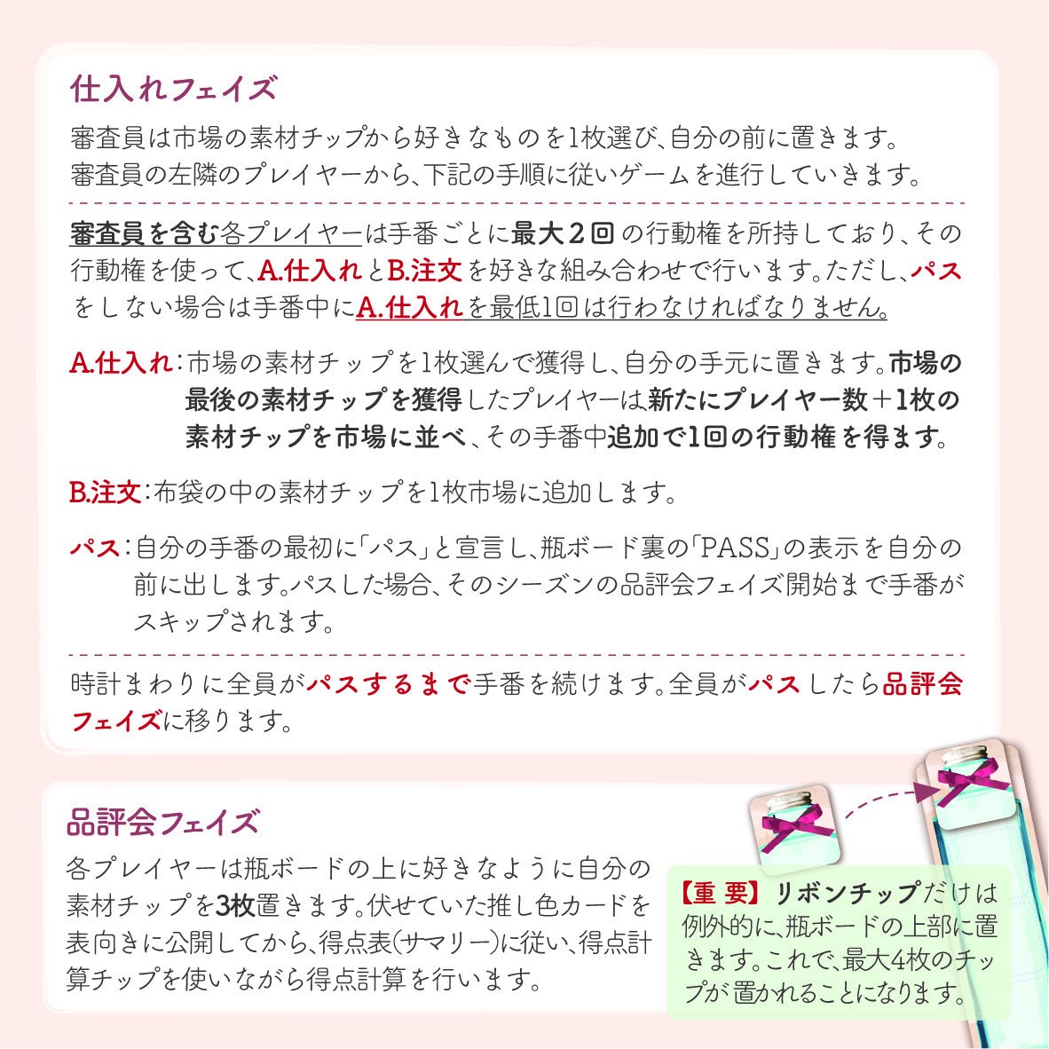 2020/09/03 20:15こんばんは!大納言製作所です。長らくお待たせ致しました、、、本日よりストレッチゴールを追加致します!!!!!!300%達成で、ここでしか手に入らない《白チップ》を¥4,000以上の全てのプランの特典に追加します!(本日以前にご支援頂いた方も対象となります。)=====【白チップ説明】=====得点計算寺、好きな色としてカウントできるワイルドカードです。ただし、流行色・審査員色による得点は入りません。======================このチップを追加することで、通常とは違った新しい目線でゲームを楽しむことができます!是非この機会をお見逃しなく!!いよいよ残り日数も2週間を切りました。ここまで、予想を遥かに上回るたくさんの方々にご支援を頂き、本当に感激しております。より良い作品をお届けするべく、最後の追い込みに是非ご協力よろしくお願い致します!!!大納言製作所 もっと見る