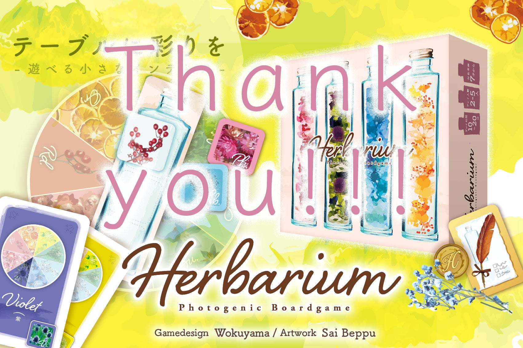 2020/09/14 12:47こんにちは!大納言製作所です。昨夜23:59をもって『Herbarium』制作プロジェクトは、 支援達成率《357%》という最高の形で終了致しました!初めてのクラウドファンディングでこれ程までのご支援を頂けるとは思っておりませんでした……。ご支援頂いた皆様、本当にありがとうございました。より良い形で商品をお届けできるよう、今後はリターンの準備に尽力して参ります。改めて、このたびは本プロジェクトにご支援いただきありがとうございました。リターンの発送まで、楽しみにお待ち下さい!! もっと見る