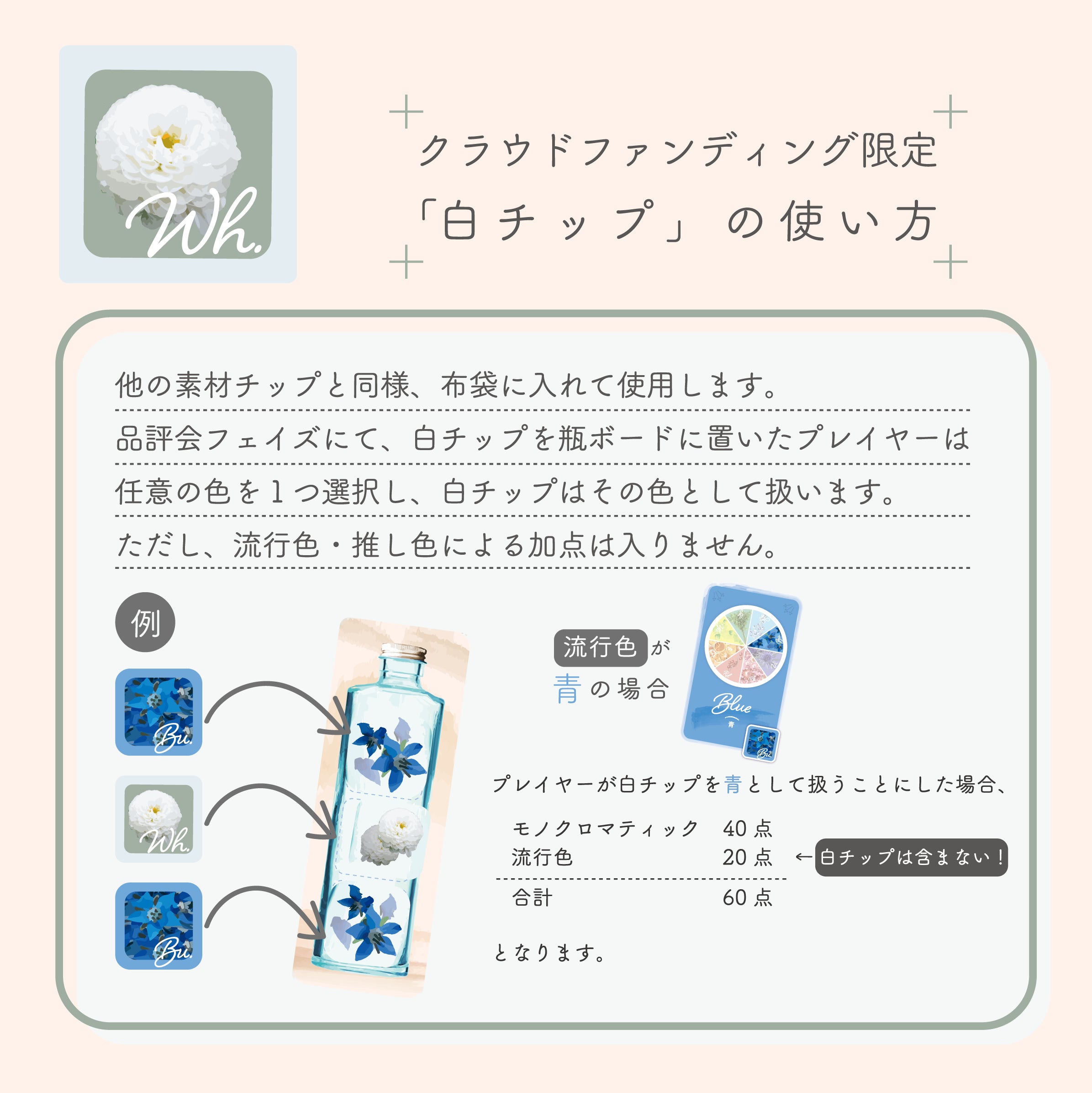 今回、ご支援頂いた皆様へのストレッチゴール特典として限定の「白チップ」を付けさせて頂いております!