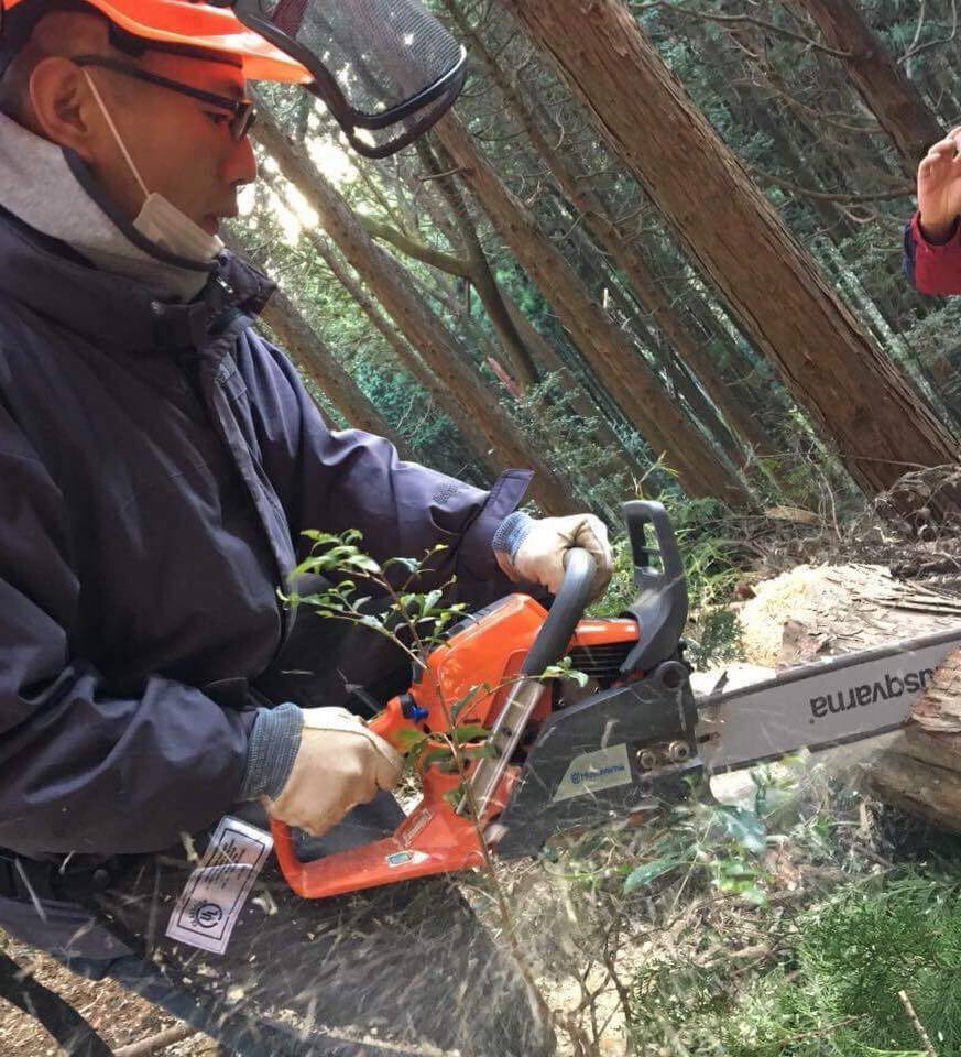 慎重に木を倒す方向を決め、丁寧な受け口を作る姿が印象的。みんなを見守ってくれる縁の下の力持ち。