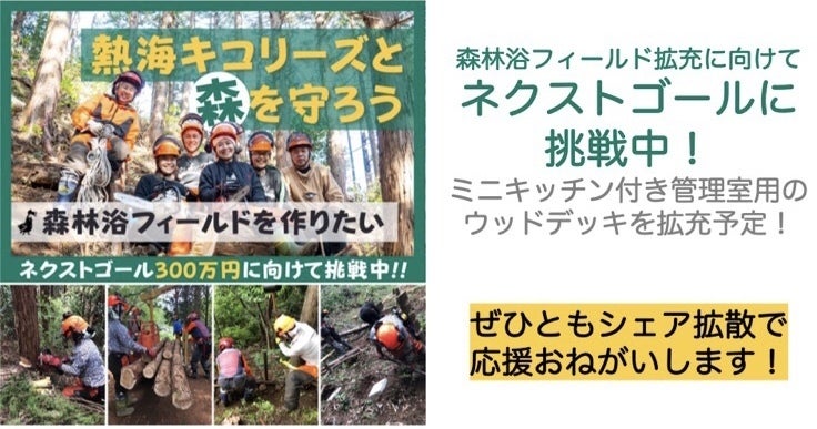 みなさまのご協力のおかげさまで、クラファンの最初の目標金額に達成することができました!森林浴フィールド拡充を目指し、さらなるネクストゴール『300万円』にも挑戦することにしました!!