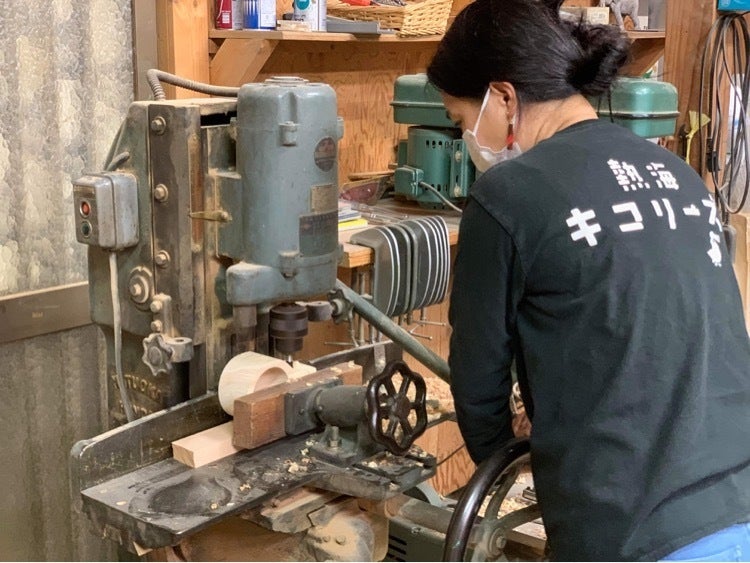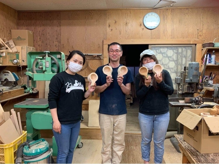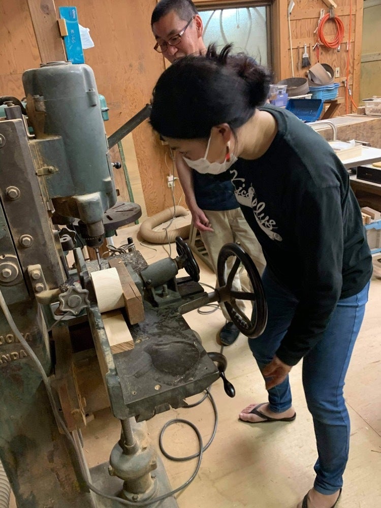 今回は木工ろくろ技術や機械を使ってククサの大体の形を作る作業を担当させていただきました。キコリーズメンバーが工房に来てくれて、持ち手の穴あけ加工も体験してくれました。この後はキコリーズメンバーの手でひとつひとつククサの形を整えていきます。最後は支援していただいた皆さんご自身で仕上げ作業をお楽しみください。より愛着がわき、お手入れしながら使い続けることで味わいのあるククサに育っていきますよ!