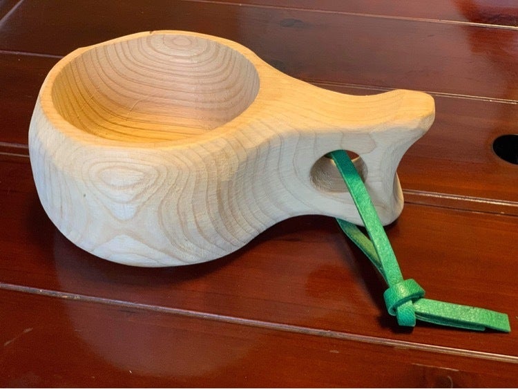 今回の間伐材ククサカップには、熱海の森をイメージしたグリーンの鹿革をつけさせていただくことにしました。ありがとうございました!