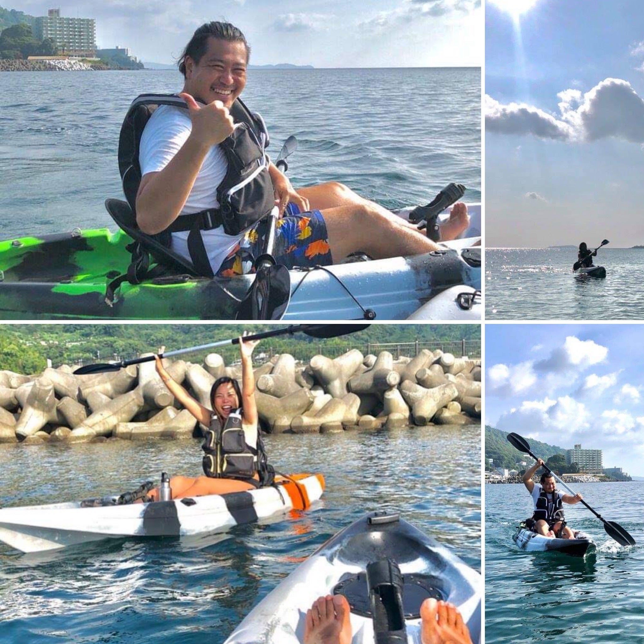 景色を楽しむ/休日の気分転換/適度な運動/海上でコーヒーを挽いてドリップ/ 海水を肌で感じる/足元を泳ぐイワシを観察/海から熱海城を見てみる/ 海への恐怖克服/カヌーで目的地へ移動/漕いで筋トレ/選手として大会に出場/ 初島にカヤックで行く/海上ランチ/バランスの悪いカヤックに挑戦...