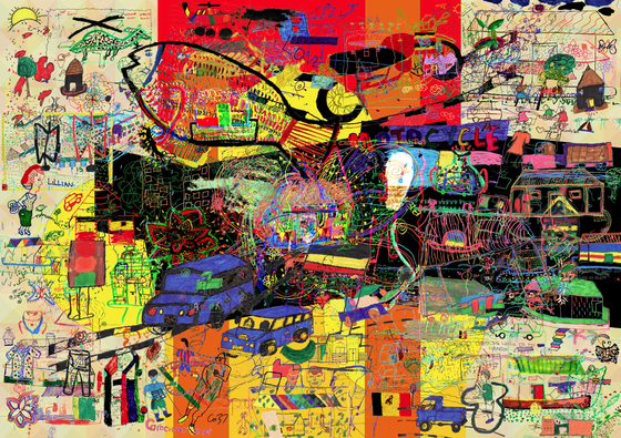 ウガンダの元子ども兵やその子どもたちの絵を素材にしたユニゾグラフが